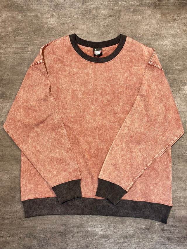 クルーネックスウェット 深みのあるスモーキーカラー。 着込んだような自然なフェード加工が、 落ち着いた存在感を生み出す。 首元・袖口・裾にはチャコールグレーのリブ。 全体を引き締め、 カジュアルの中に品を添える配色。 size M 肩幅 58cm 身幅 59cm 着丈 66cm 袖丈 56cm size L 肩幅 61cm 身幅 63cm 着丈 69cm 袖丈 59cm 掲載画像は実物に近い色味になるよう撮影しておりますが、撮影環境・モニター環境により、 実際の商品と色味が異なる場合がございます。 色味の違いによる返品・交換はお受けできませんので、 あらかじめご了承ください。