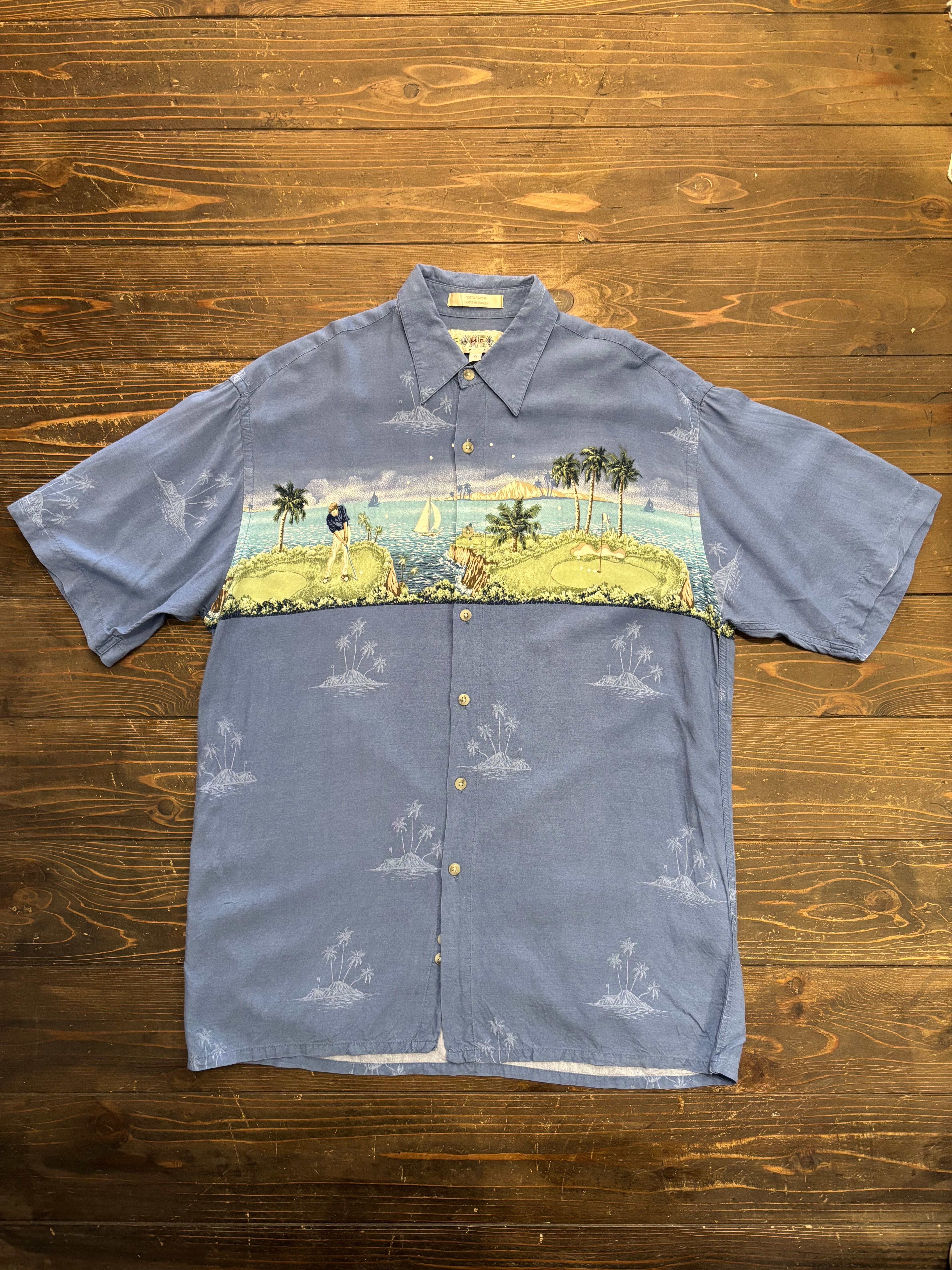 アロハシャツを得意としたブランドCAMPIAの半袖シャツ。レーヨン100%で柔らかな手触り、リラックスした着こなしができる1着。