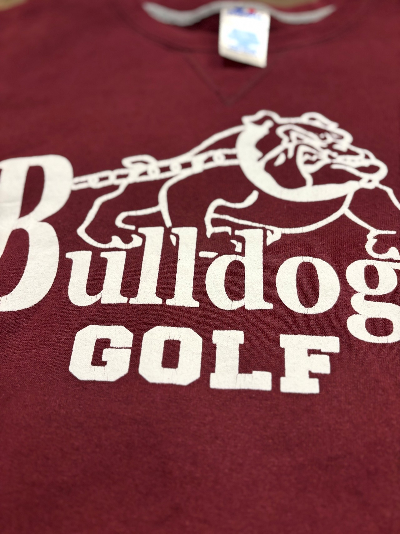 ゴルフ部をイメージしつつ、ブルドッグの強くて粘り強いという、スポーツ精神の象徴をプリント。