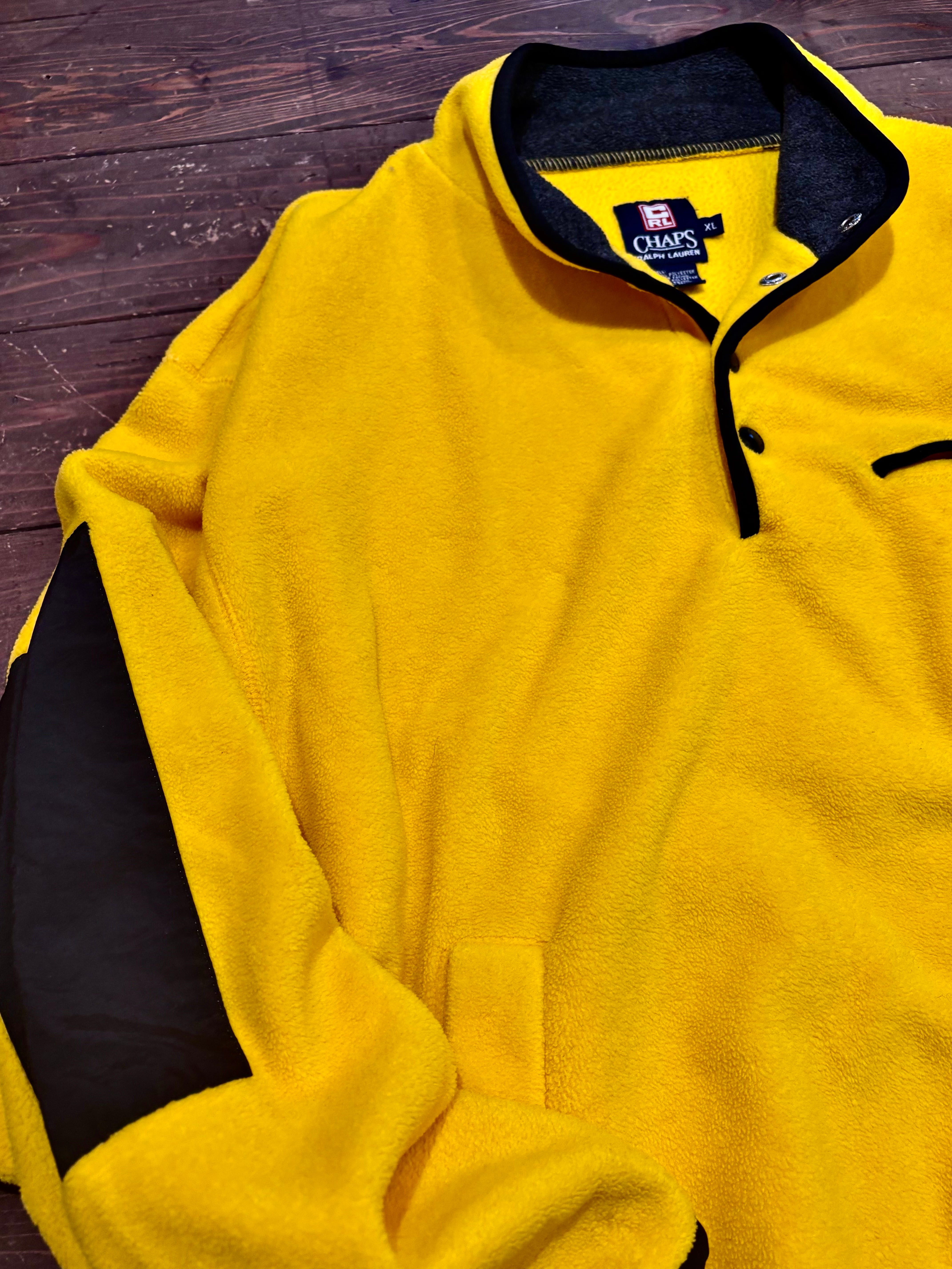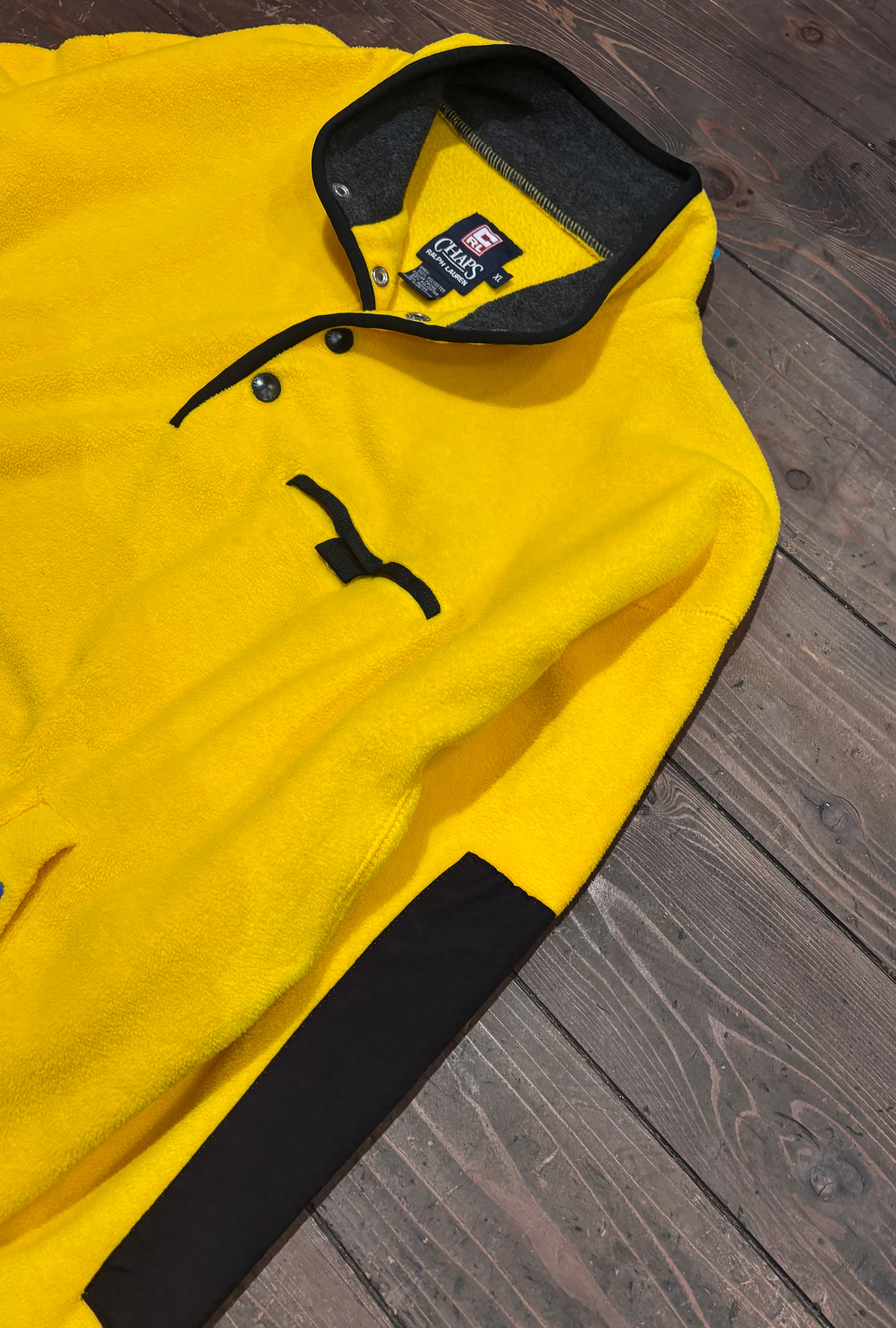 発色の良いイエローに、ブラックの切り替えが映える一着。