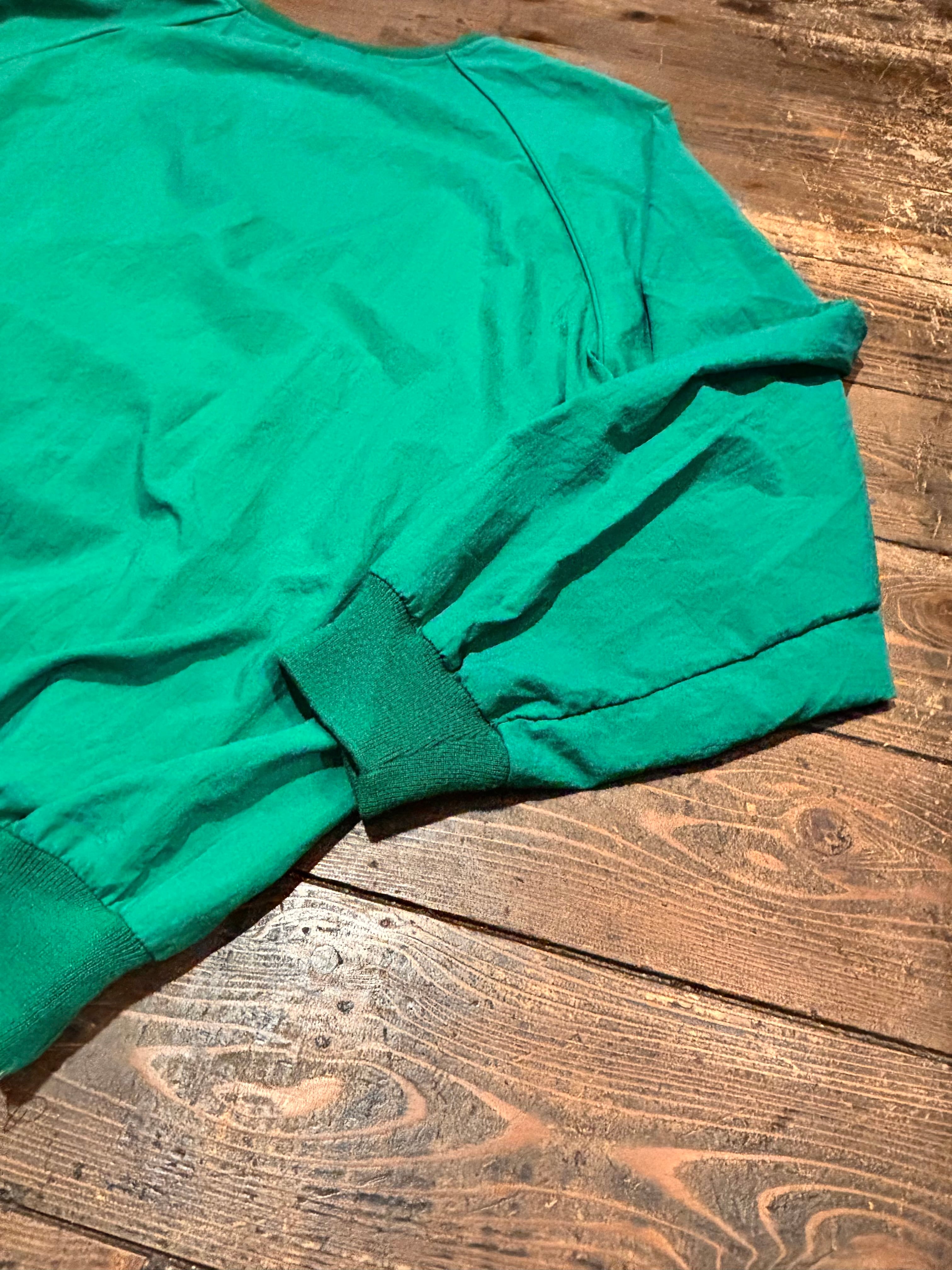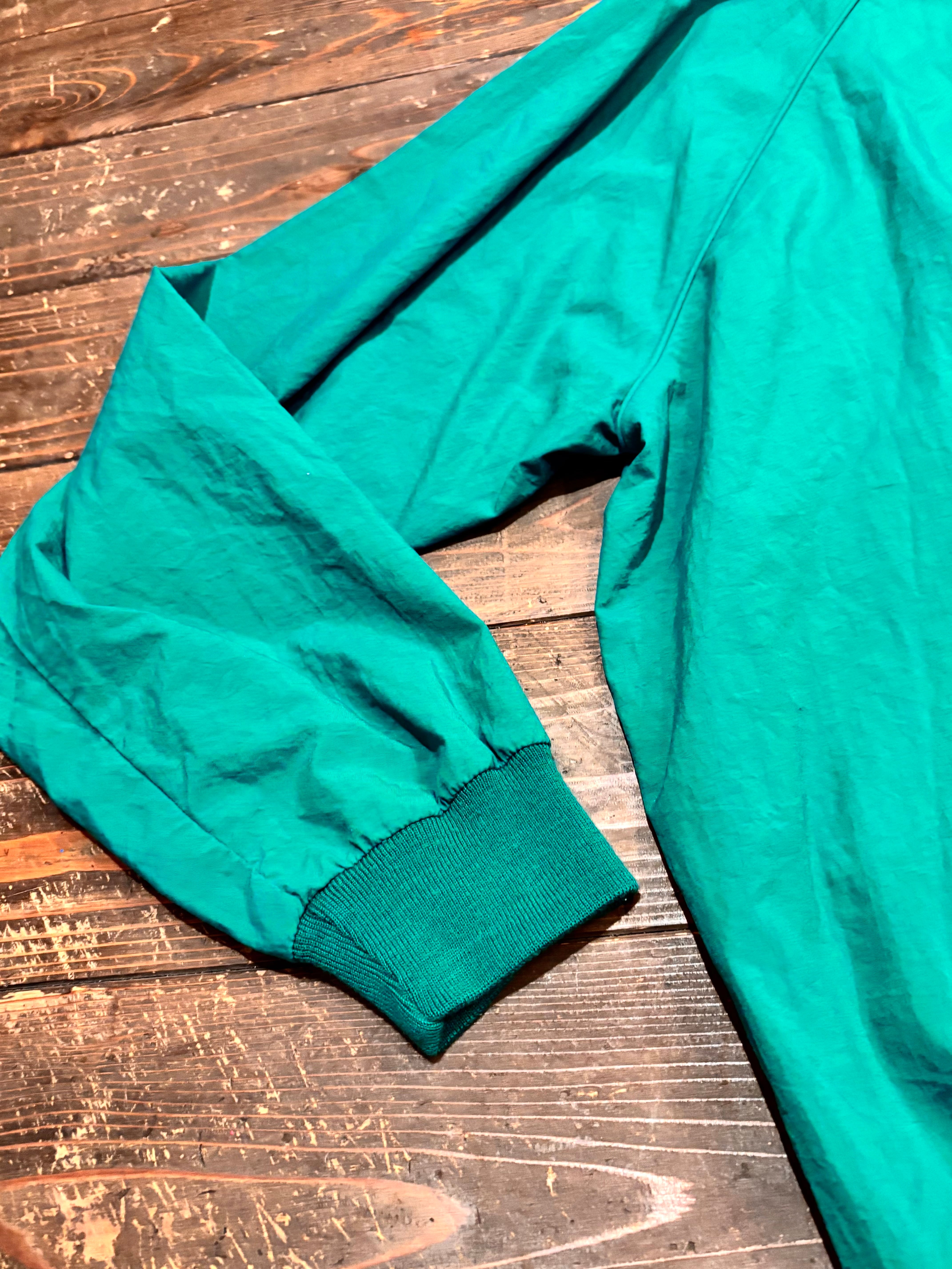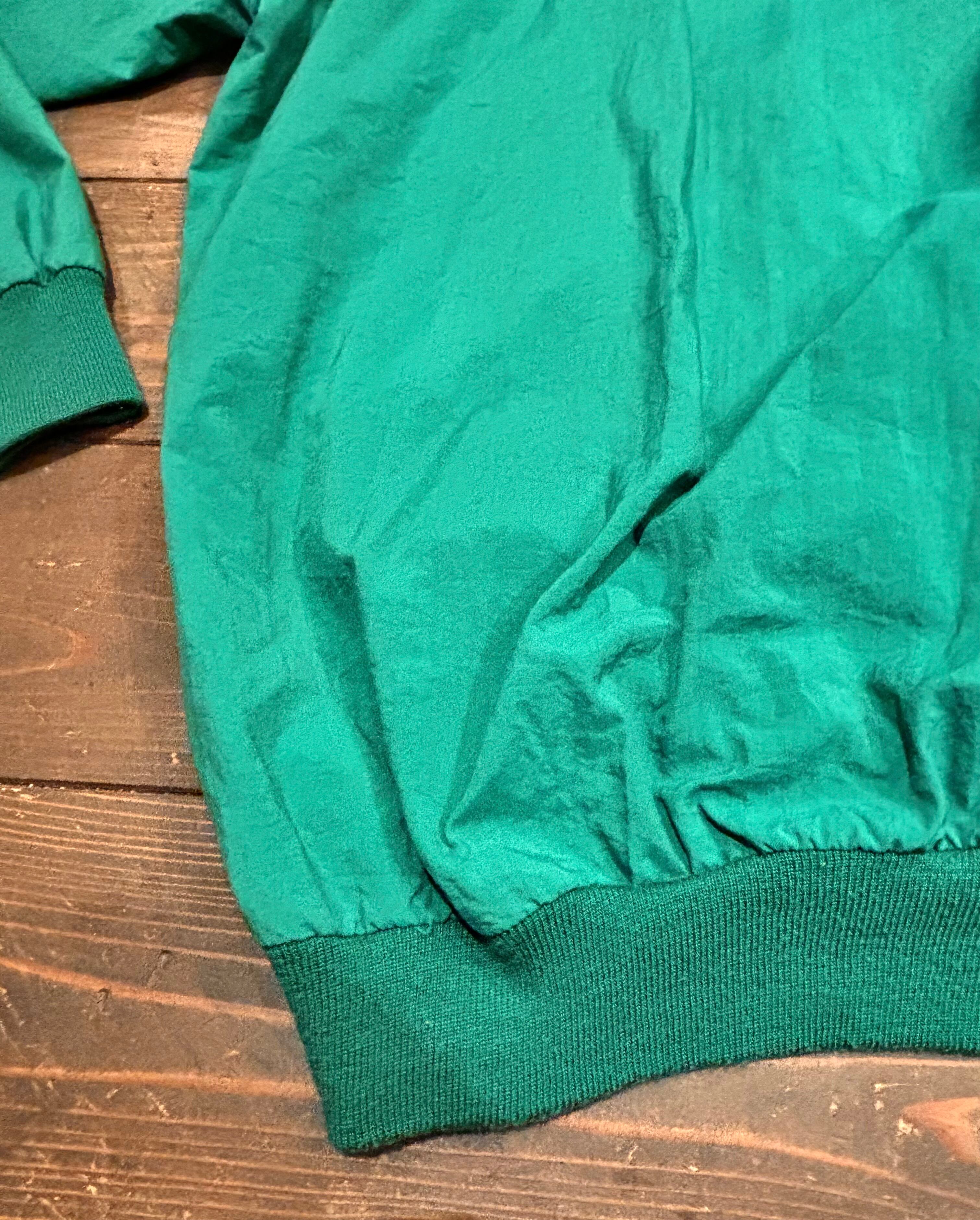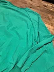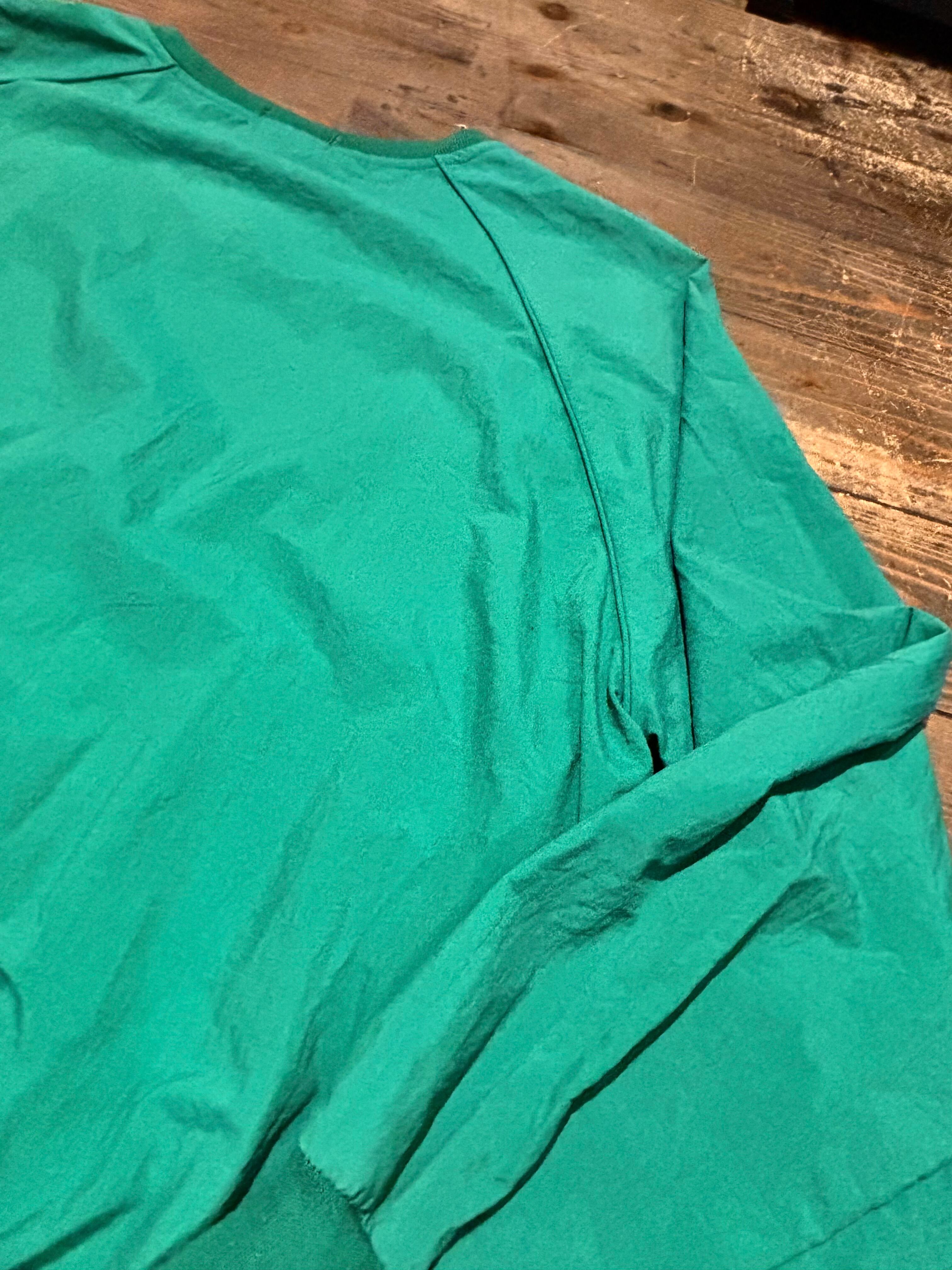 発色の良いグリーンカラーに、胸元のさりげないロゴ刺繍がアクセントになったシンプルながら存在感のある一枚。