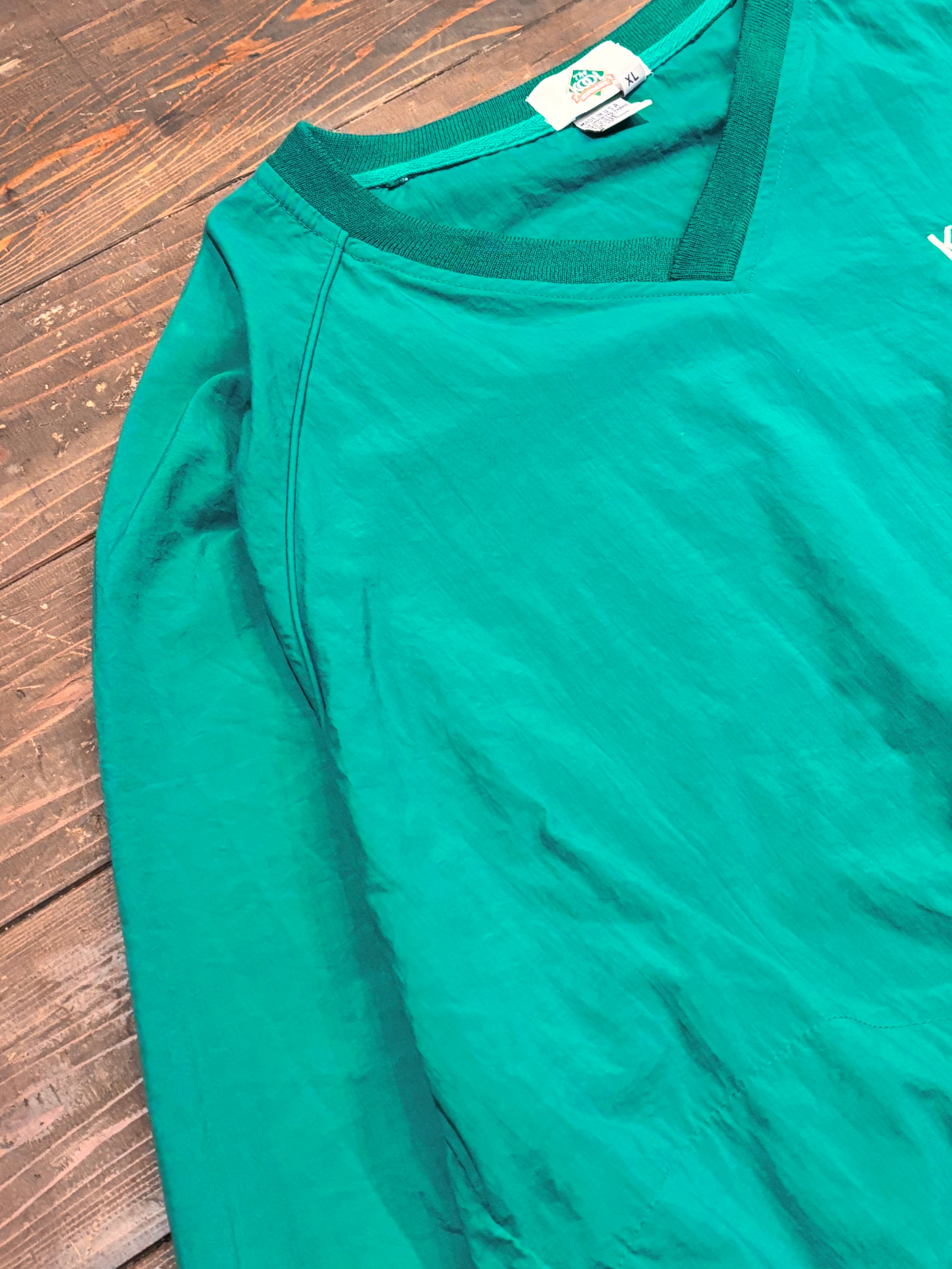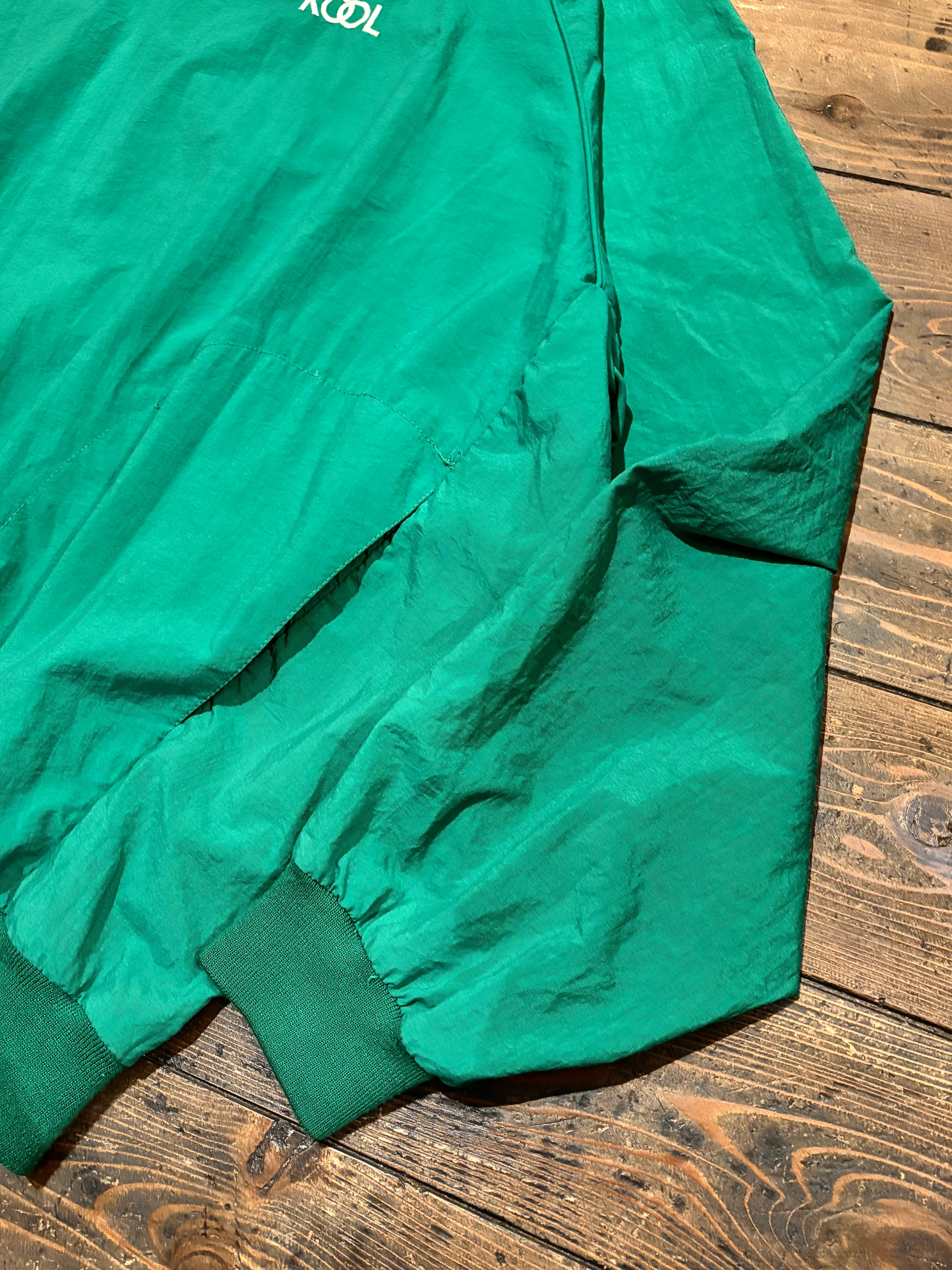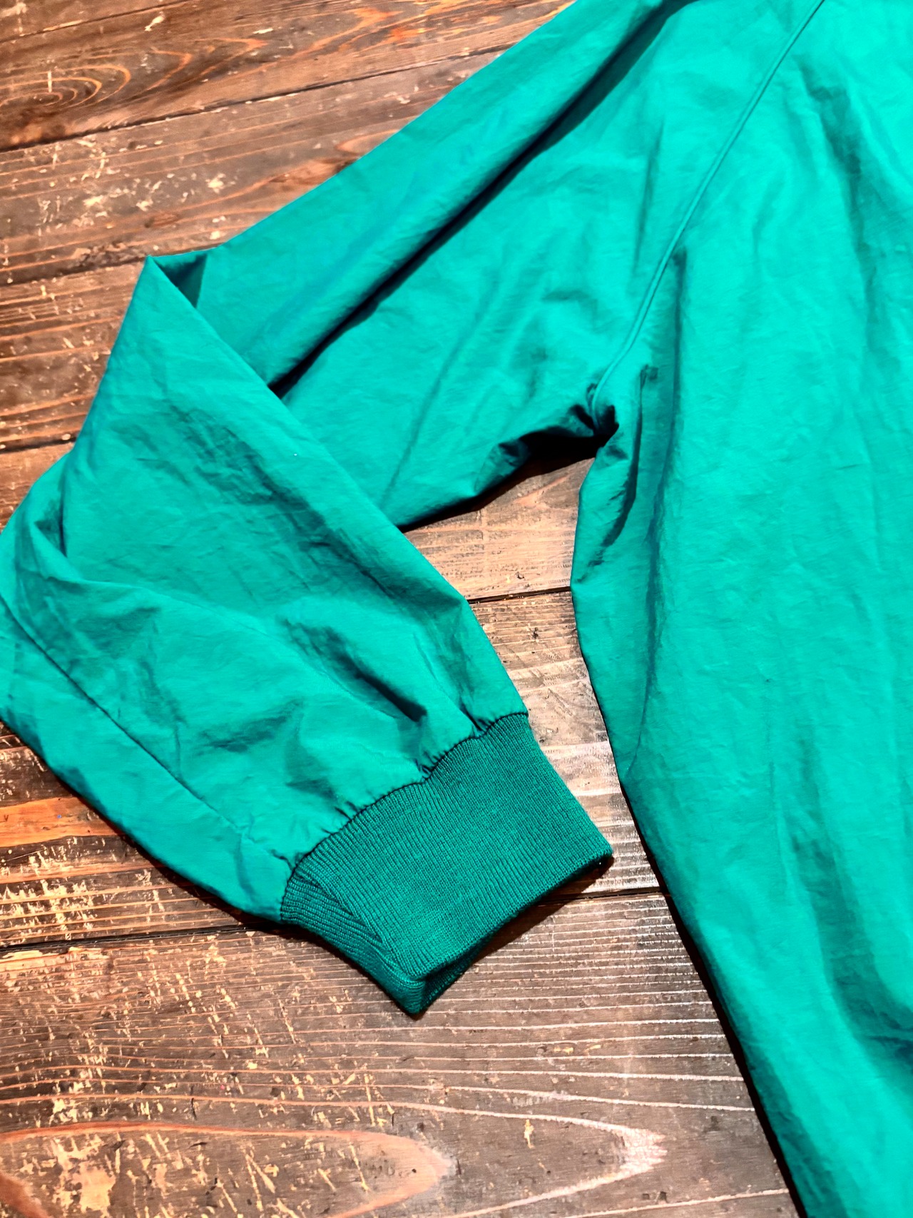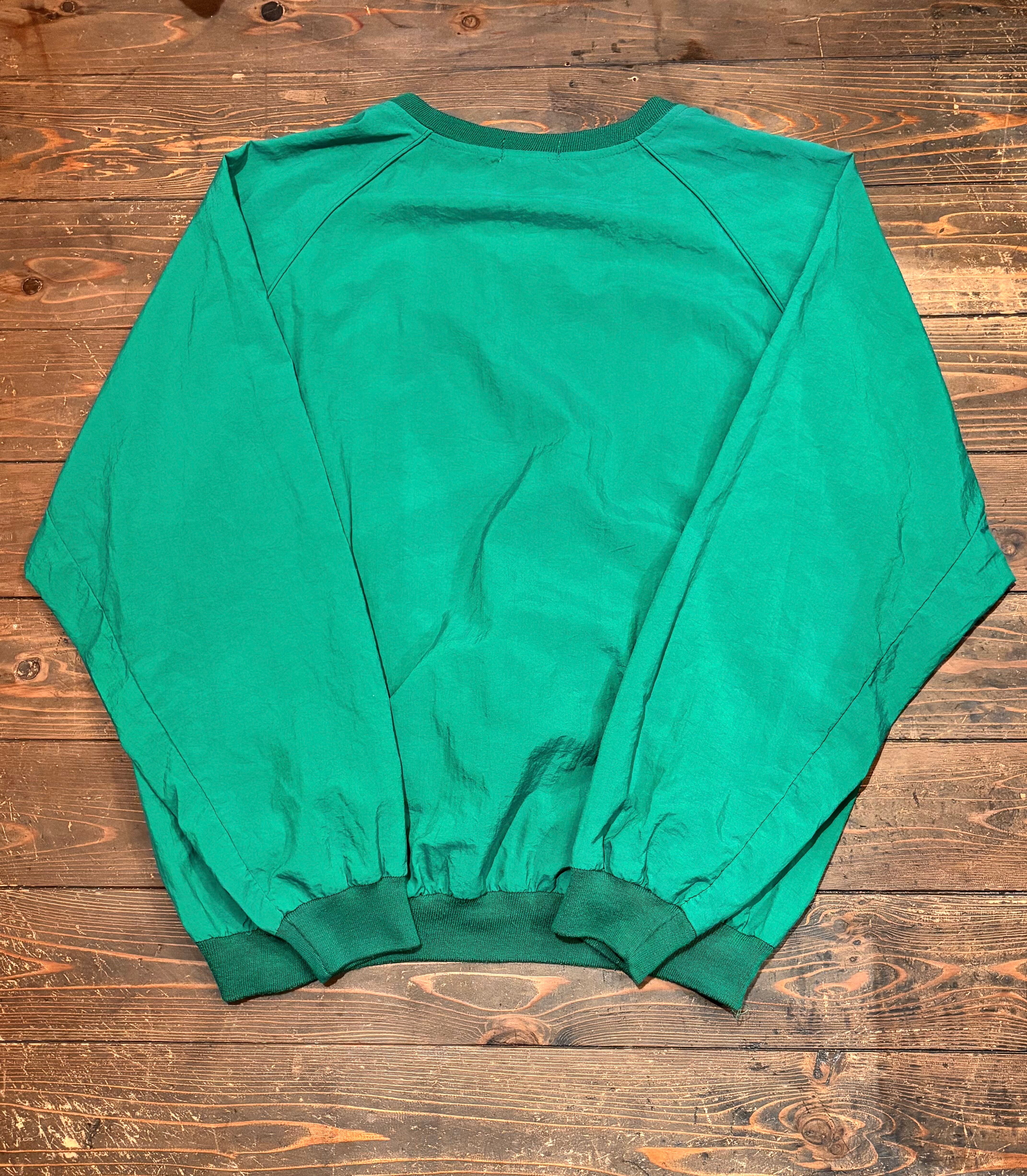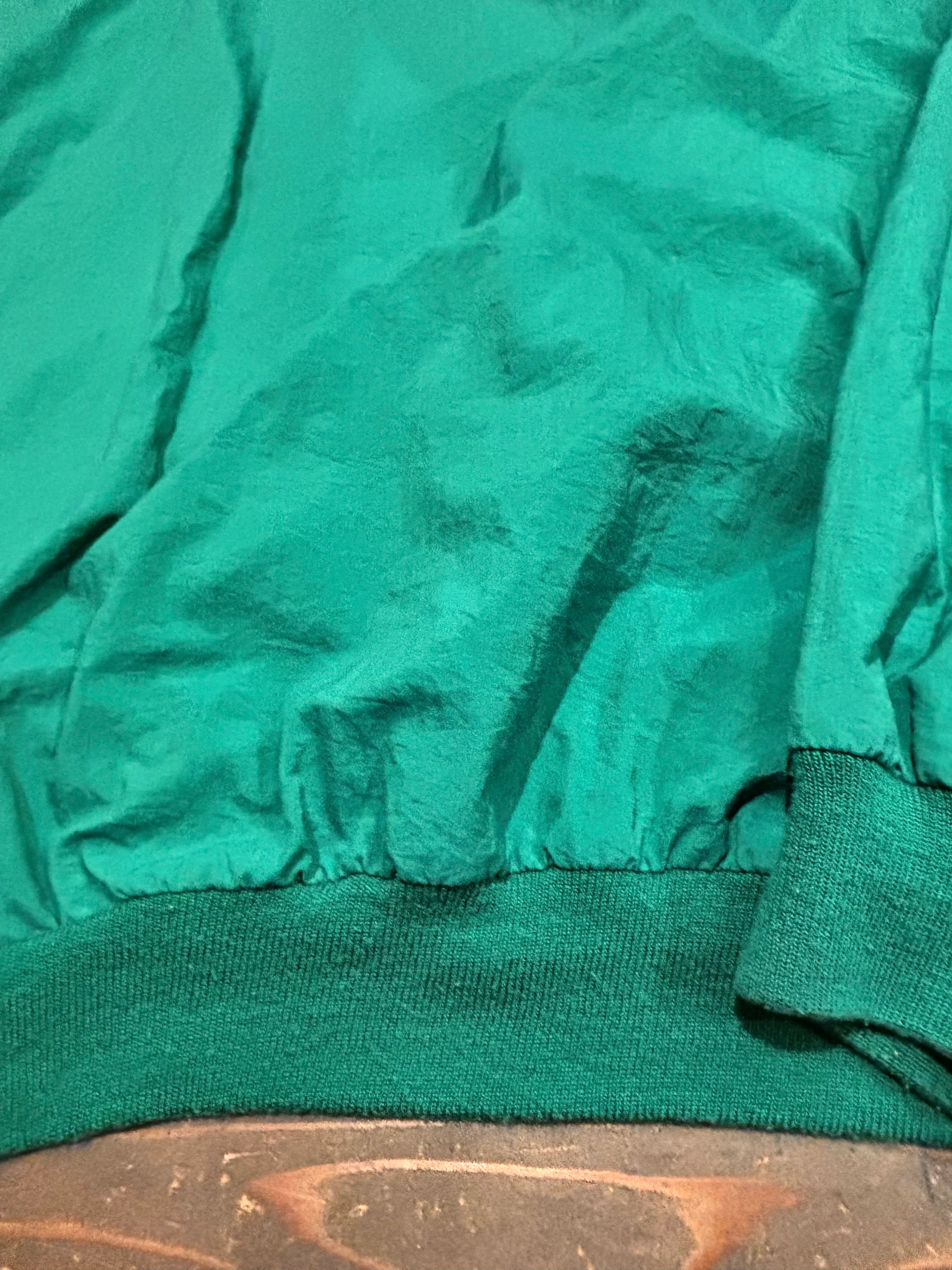 発色の良いグリーンカラーに、胸元のさりげないロゴ刺繍がアクセントになったシンプルながら存在感のある一枚。