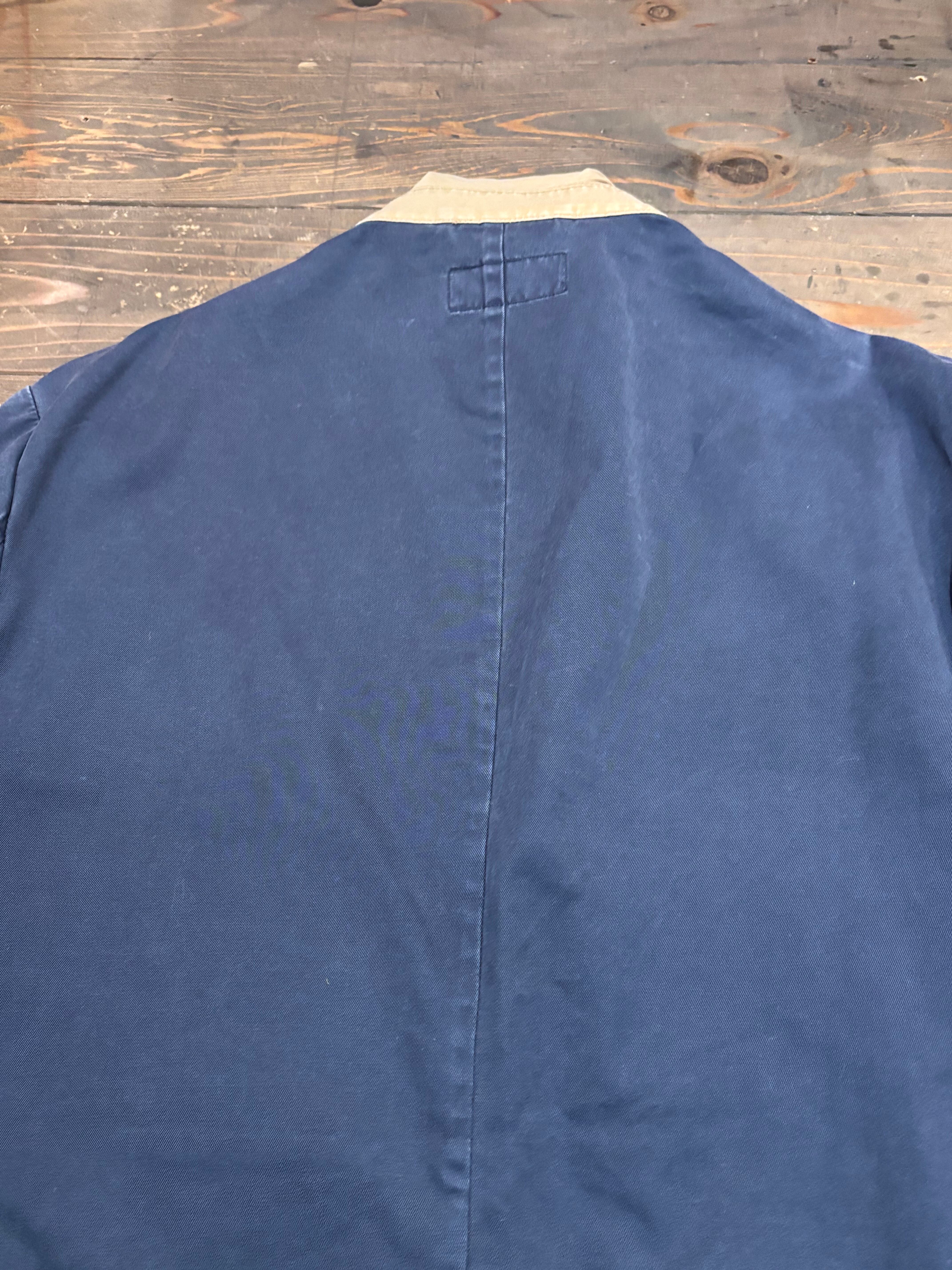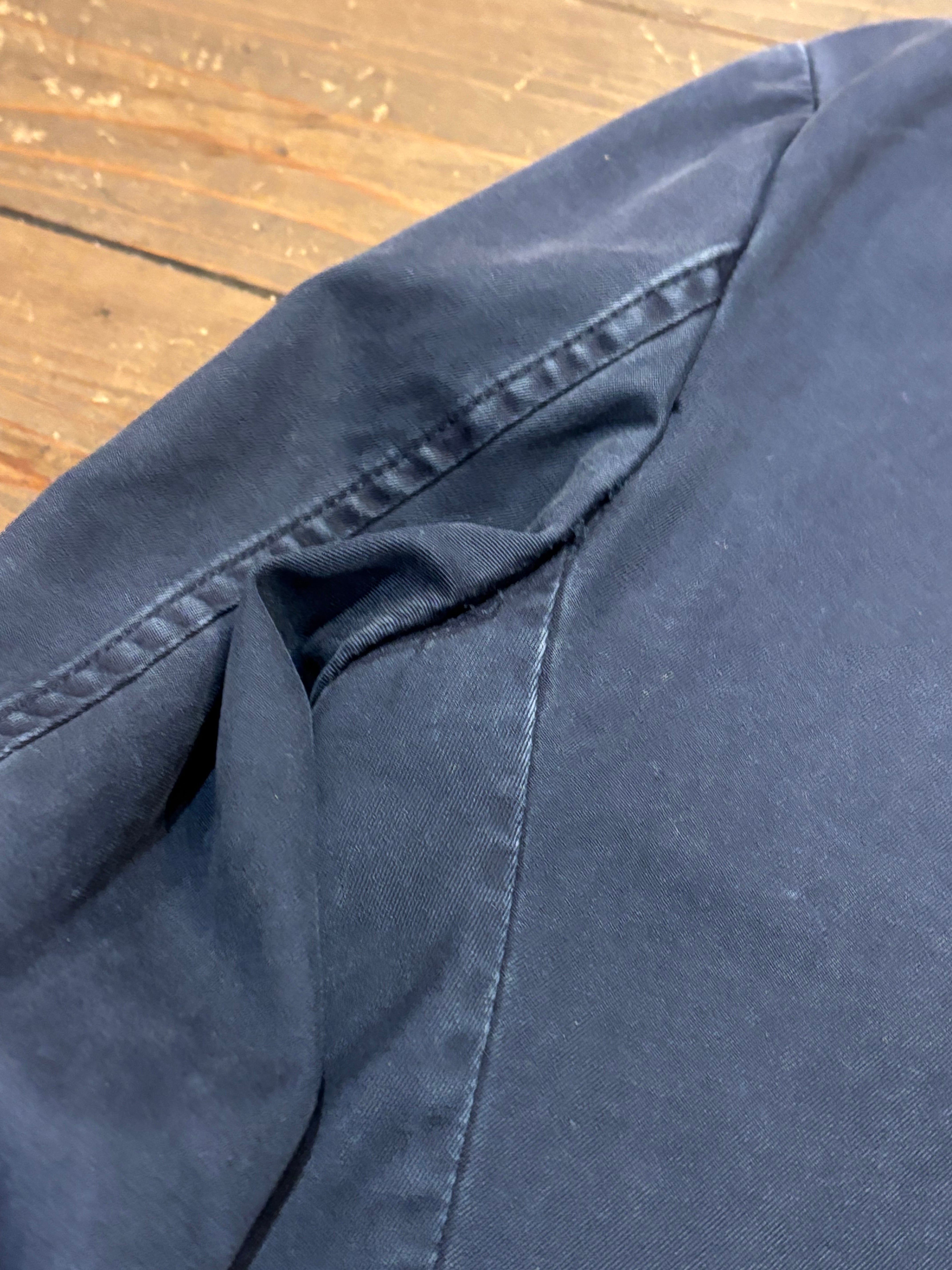 程よくフェードしたネイビーカラーと、胸ポケットのヨット刺繍がヴィンテージらしい雰囲気を演出します。