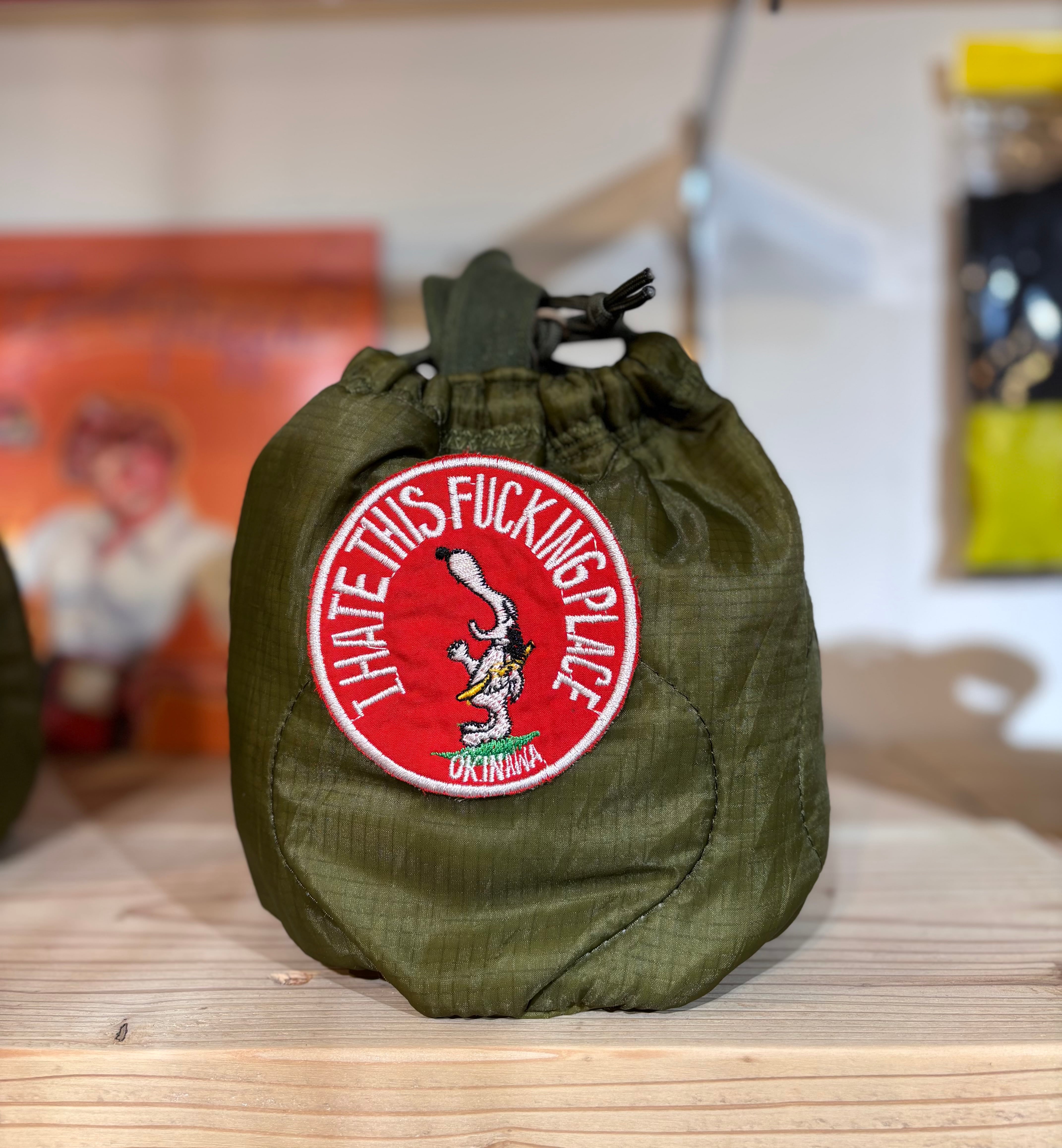 アメリカ軍のミリタリー素材(キルトライナー、コットンファティーグ)素材を使用したリメイクのペーシェントバッグポーチ