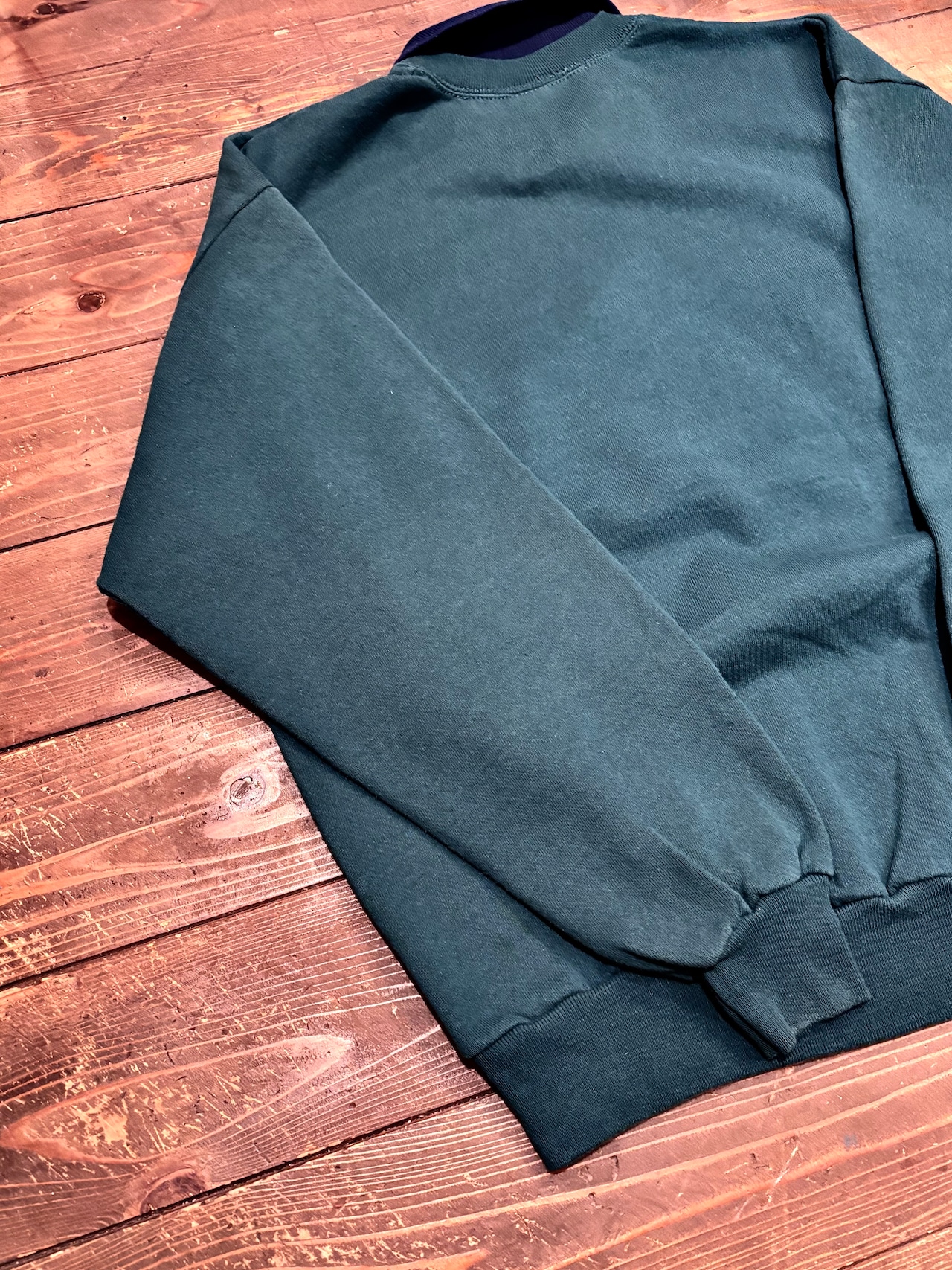スウェットにニットリブの襟を組み合わせた、ちょっと珍しいデザインが魅力の一枚。