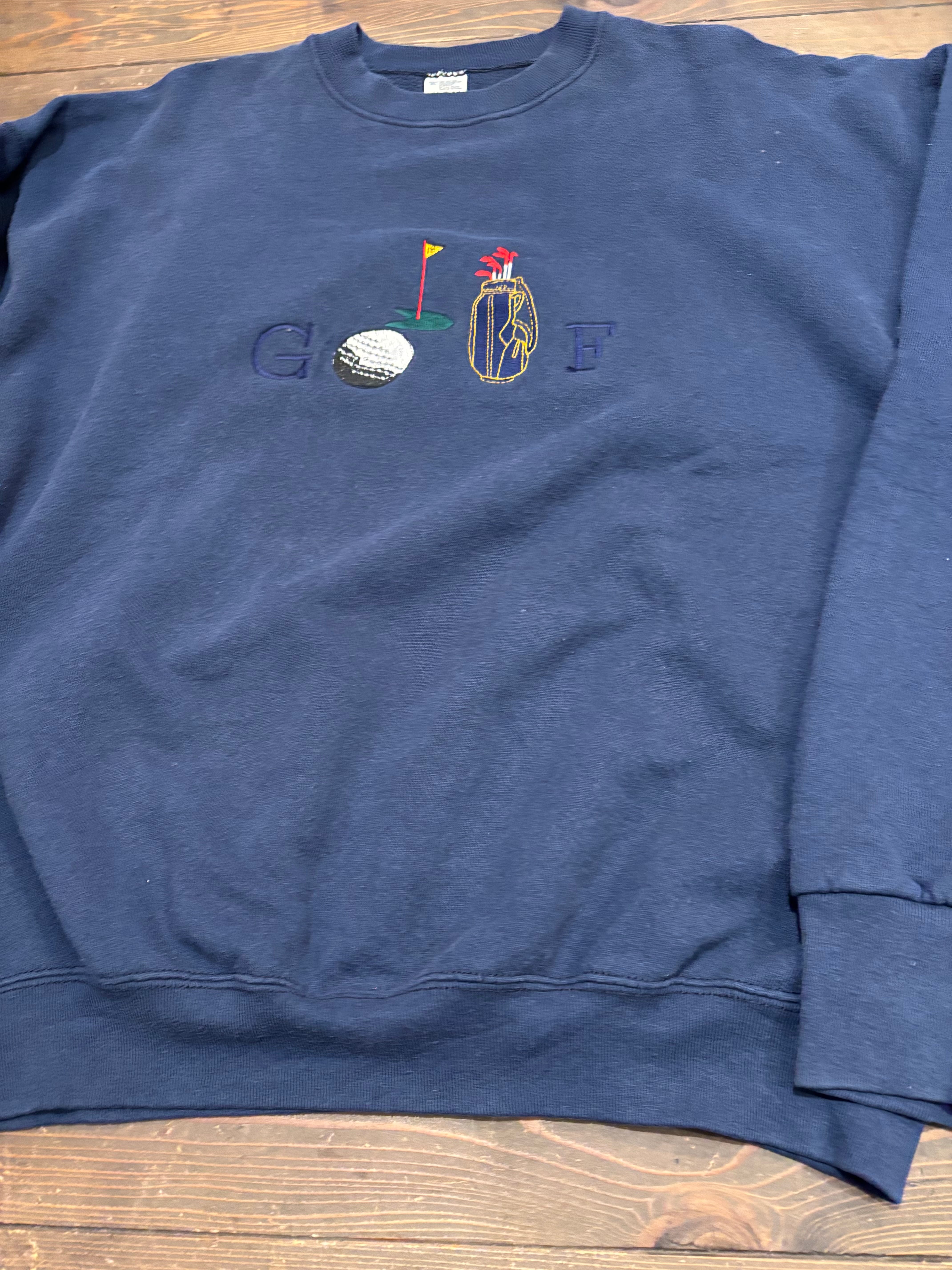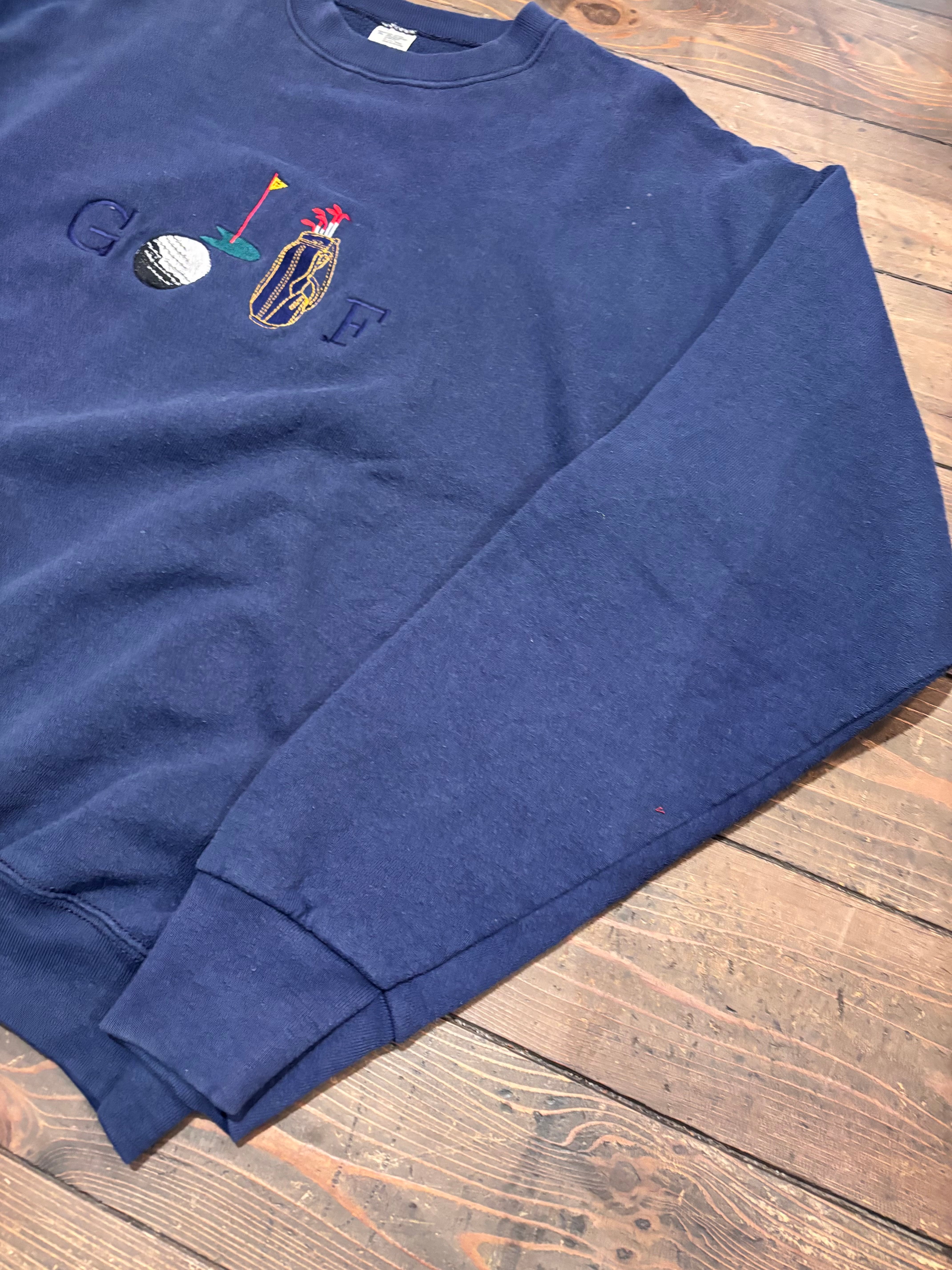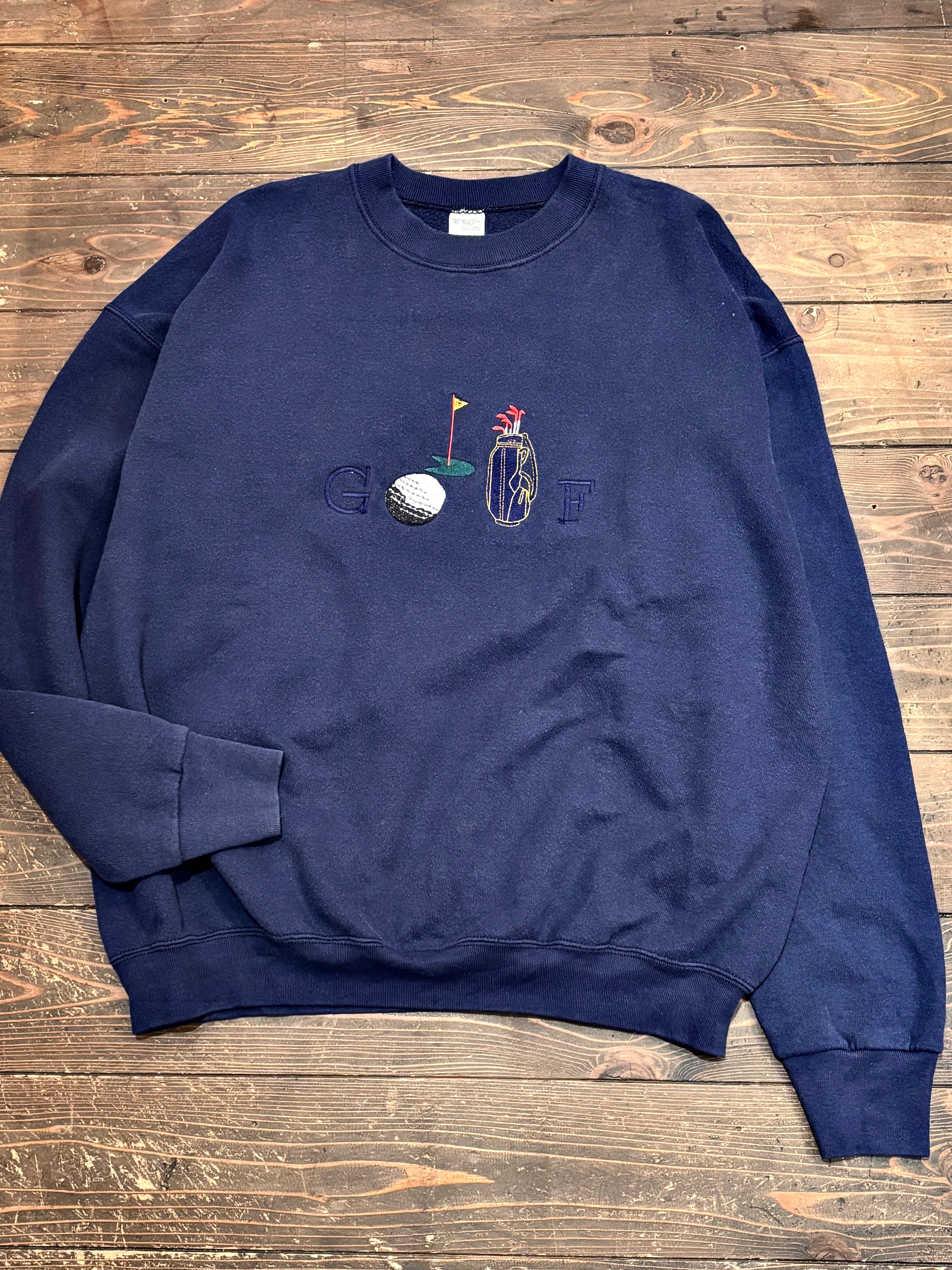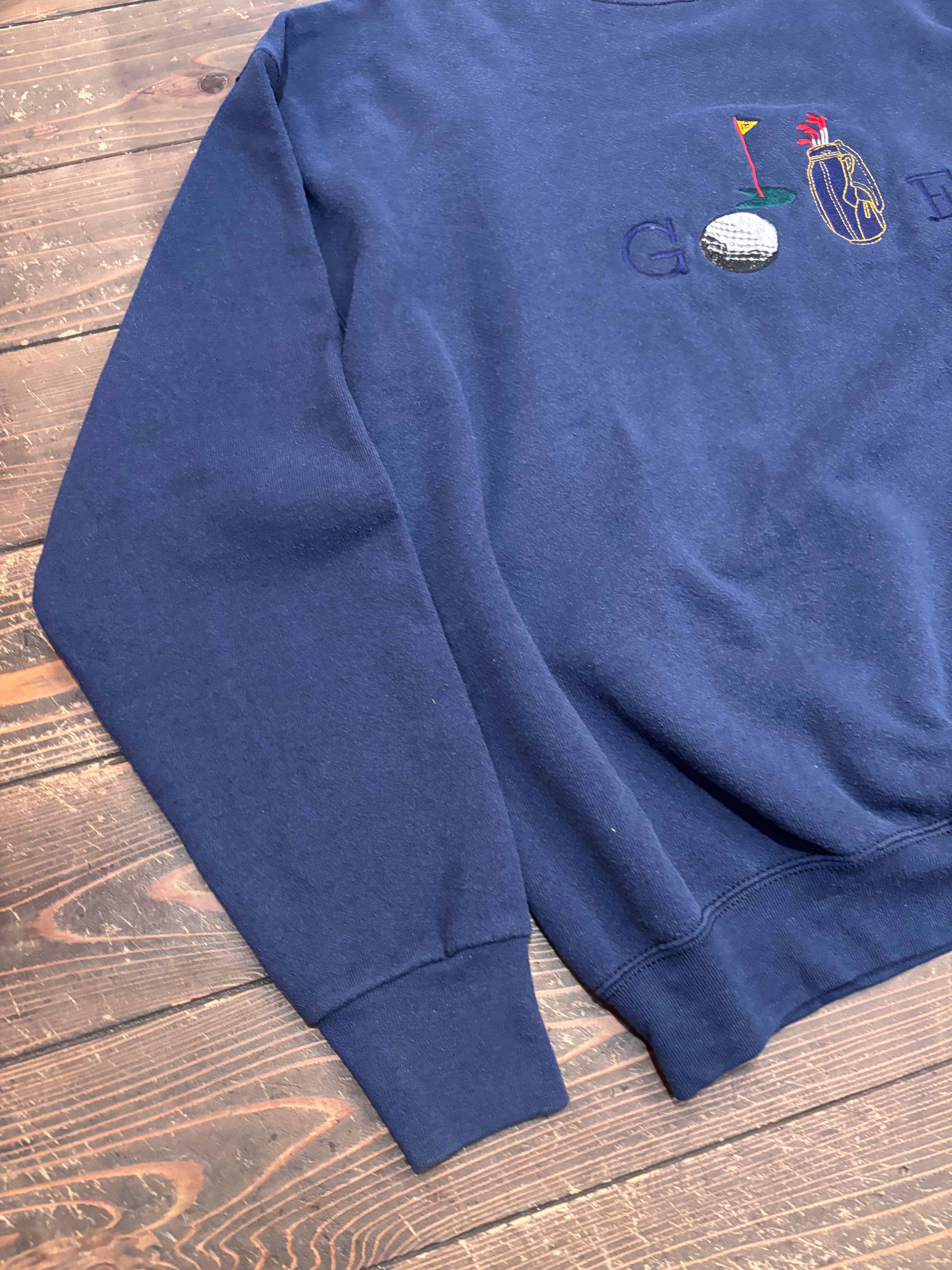 ゴルフモチーフの刺繍が施されたクルーネックスウェット。