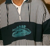 80年代アメカジを思わせるレトロなストライプが印象的なハーフZIPプルオーバー。