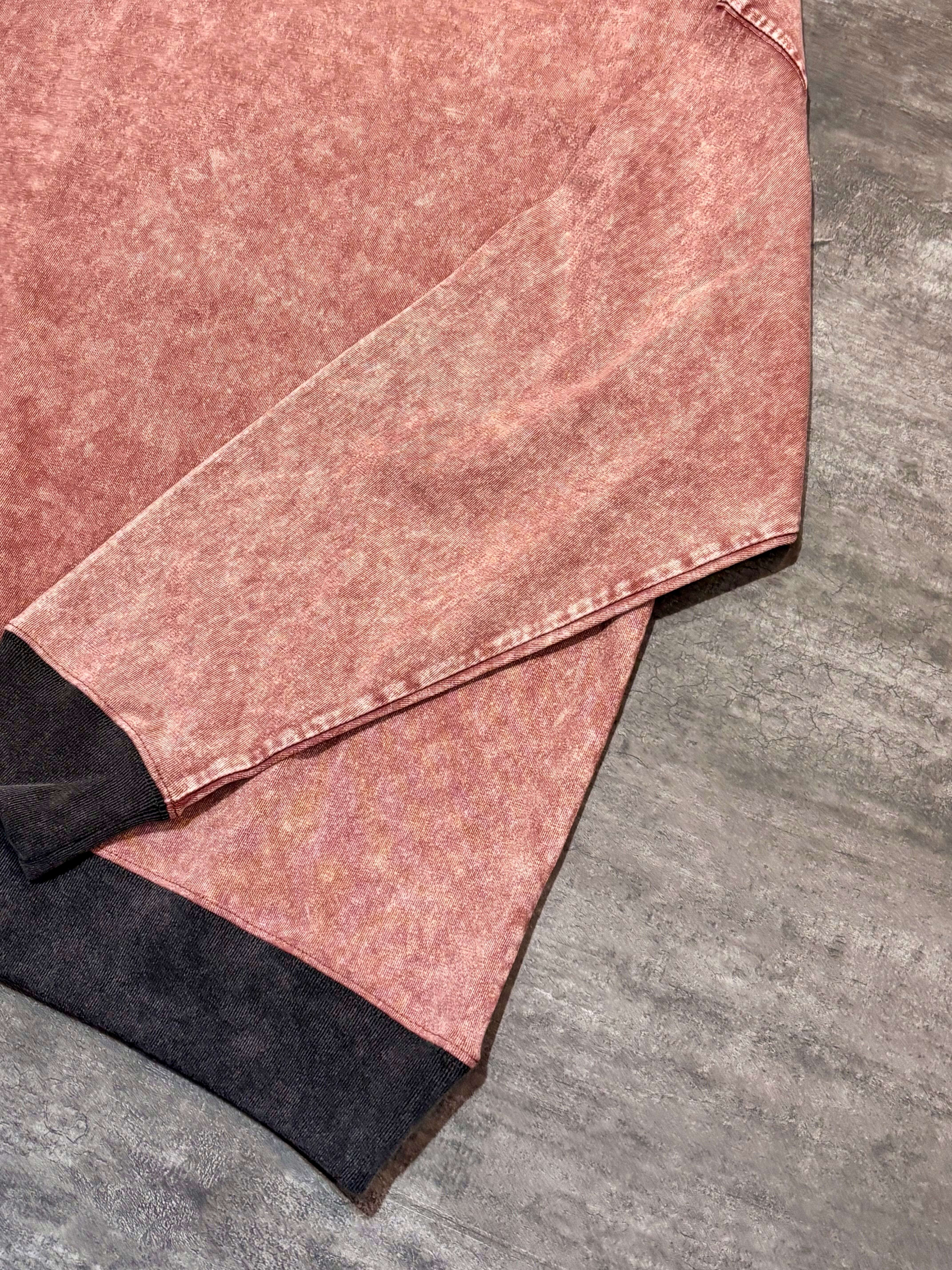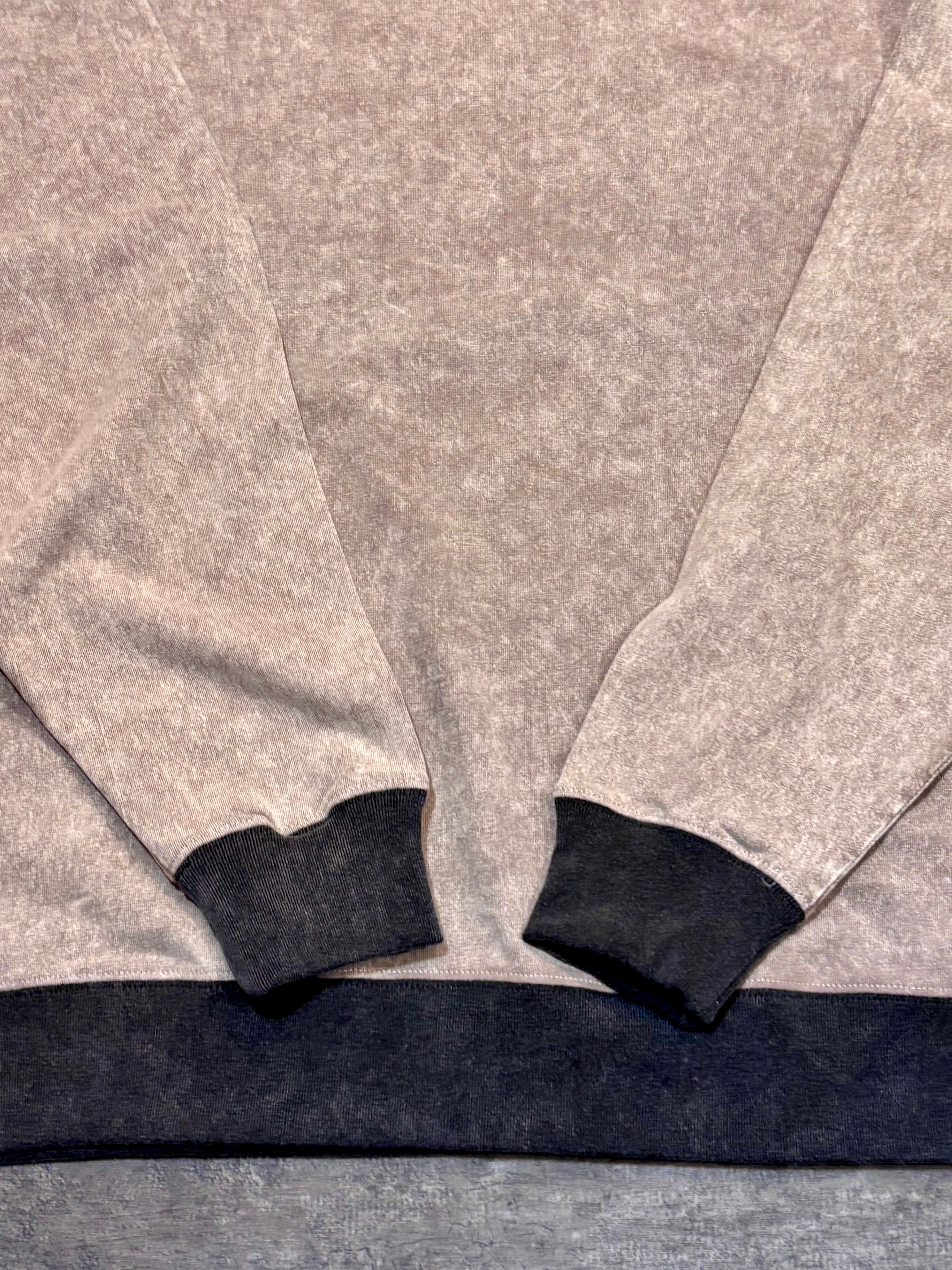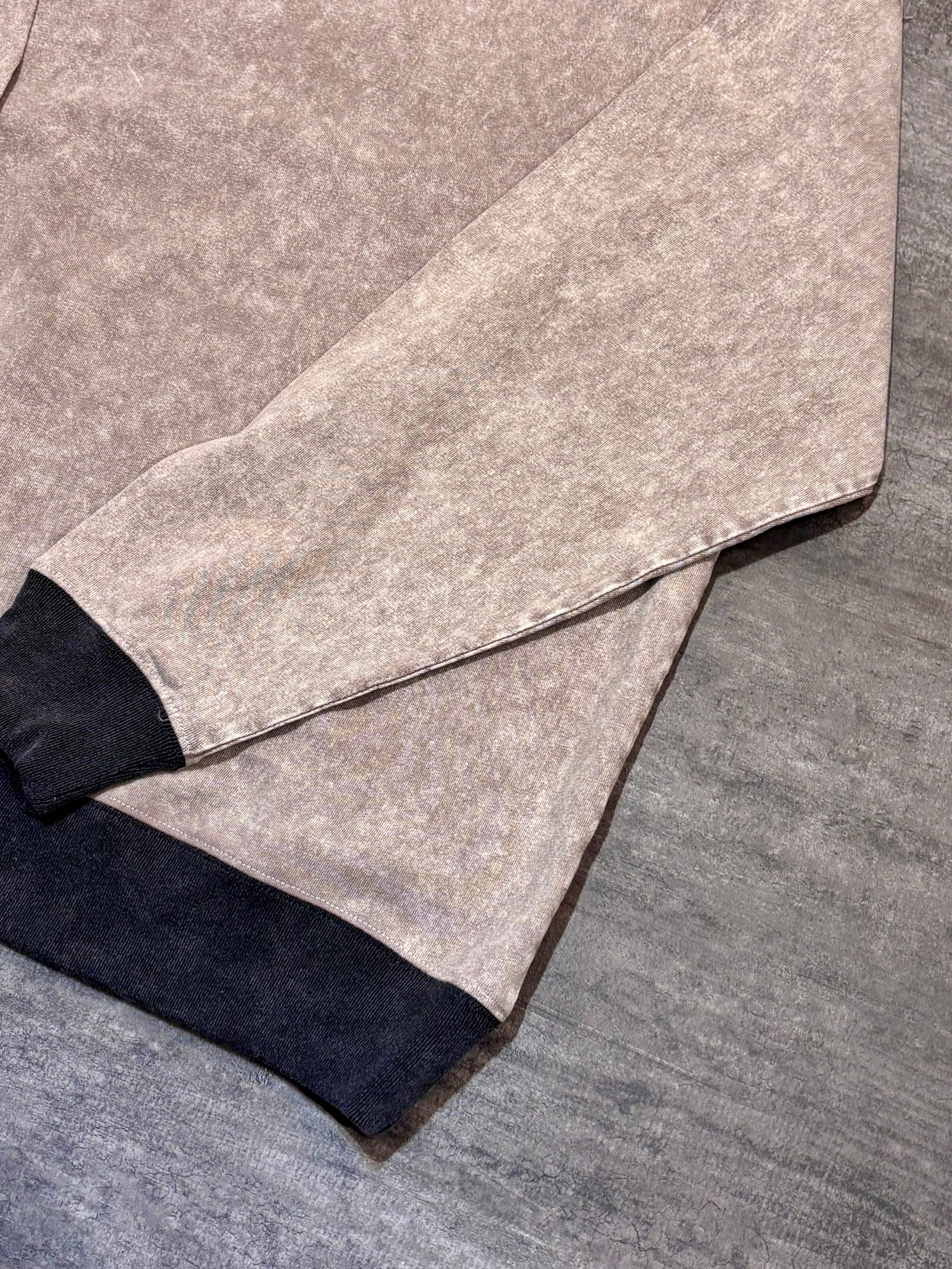 首元・袖口・裾にはチャコールグレーのリブ。