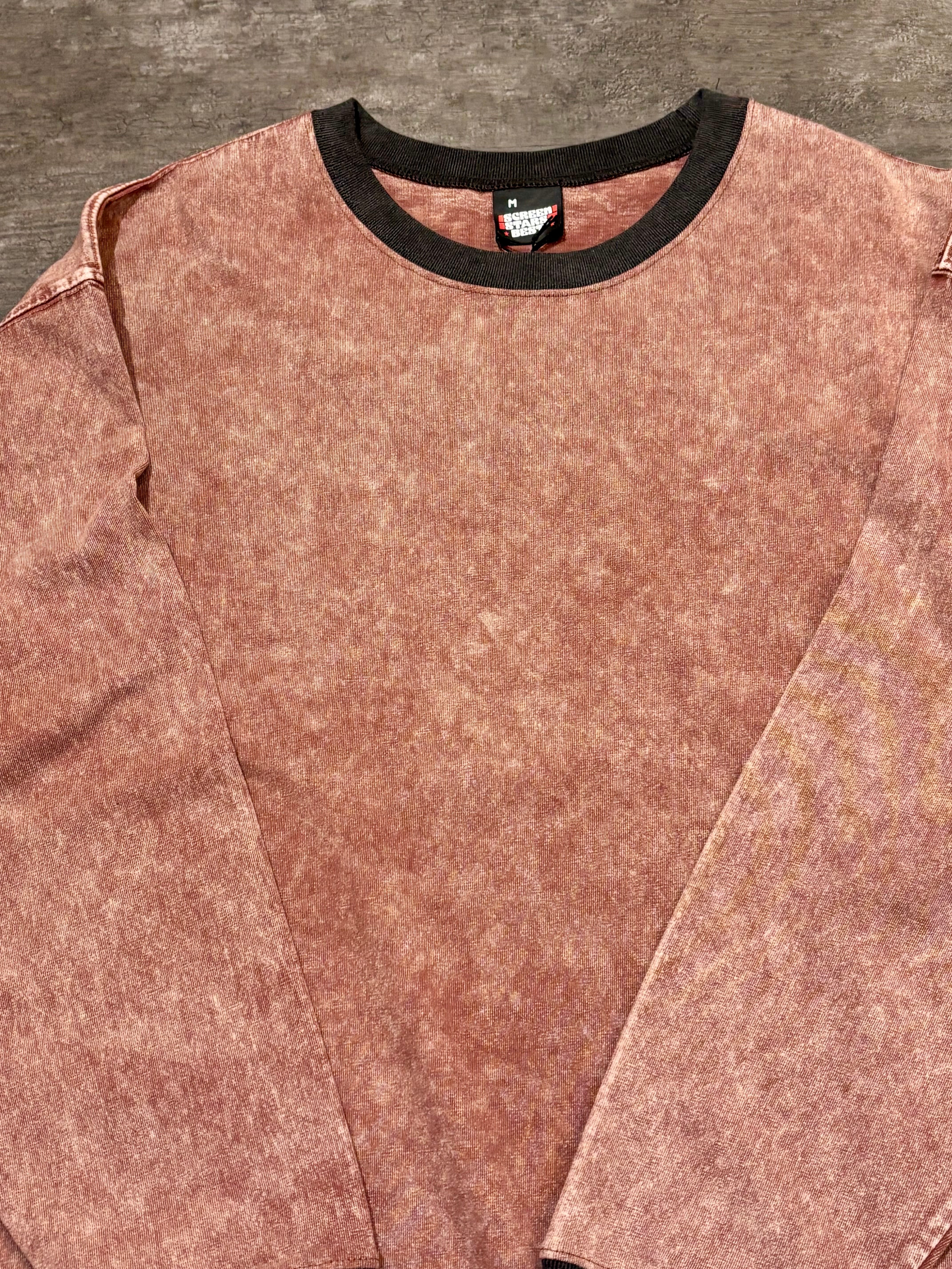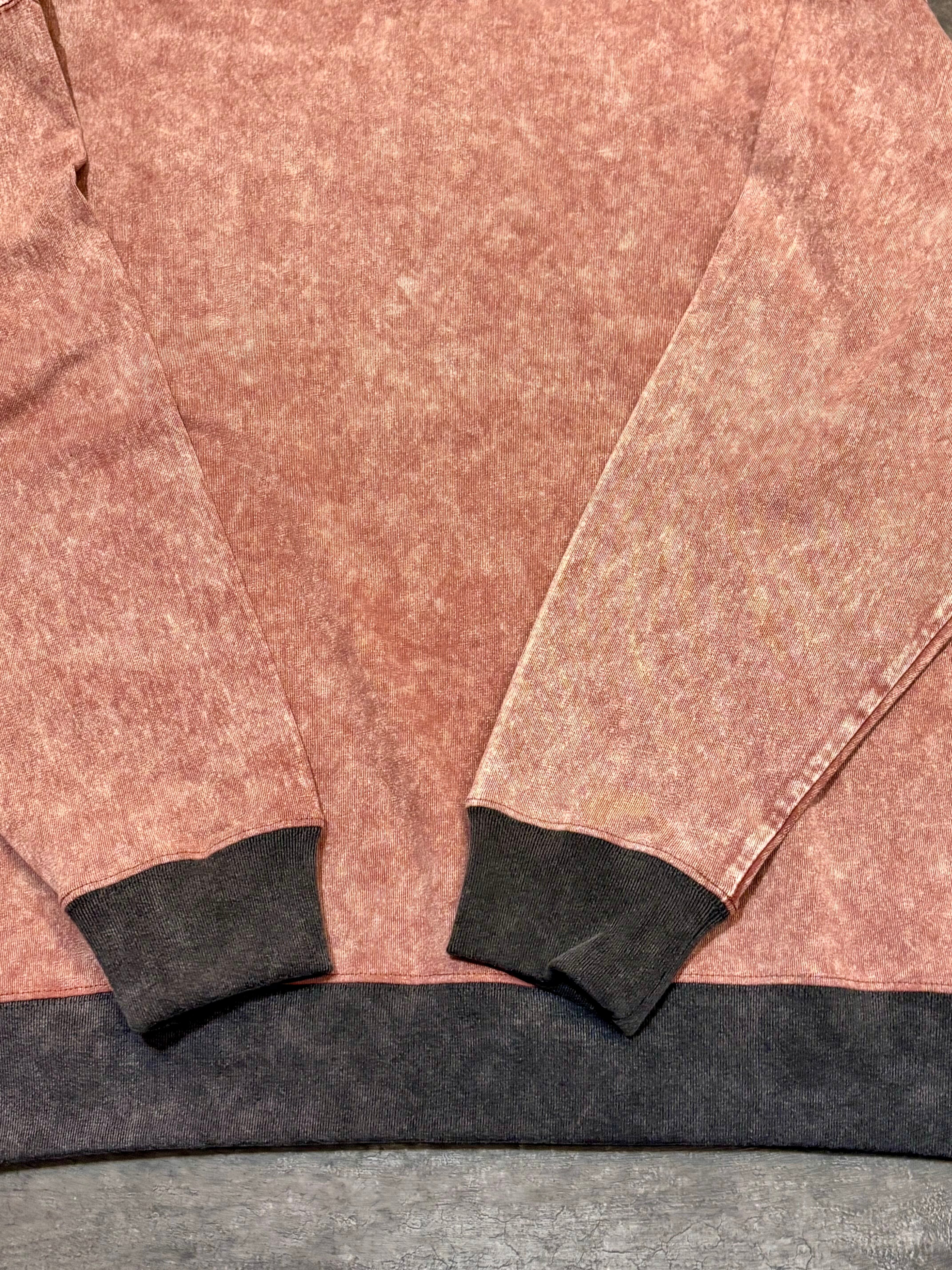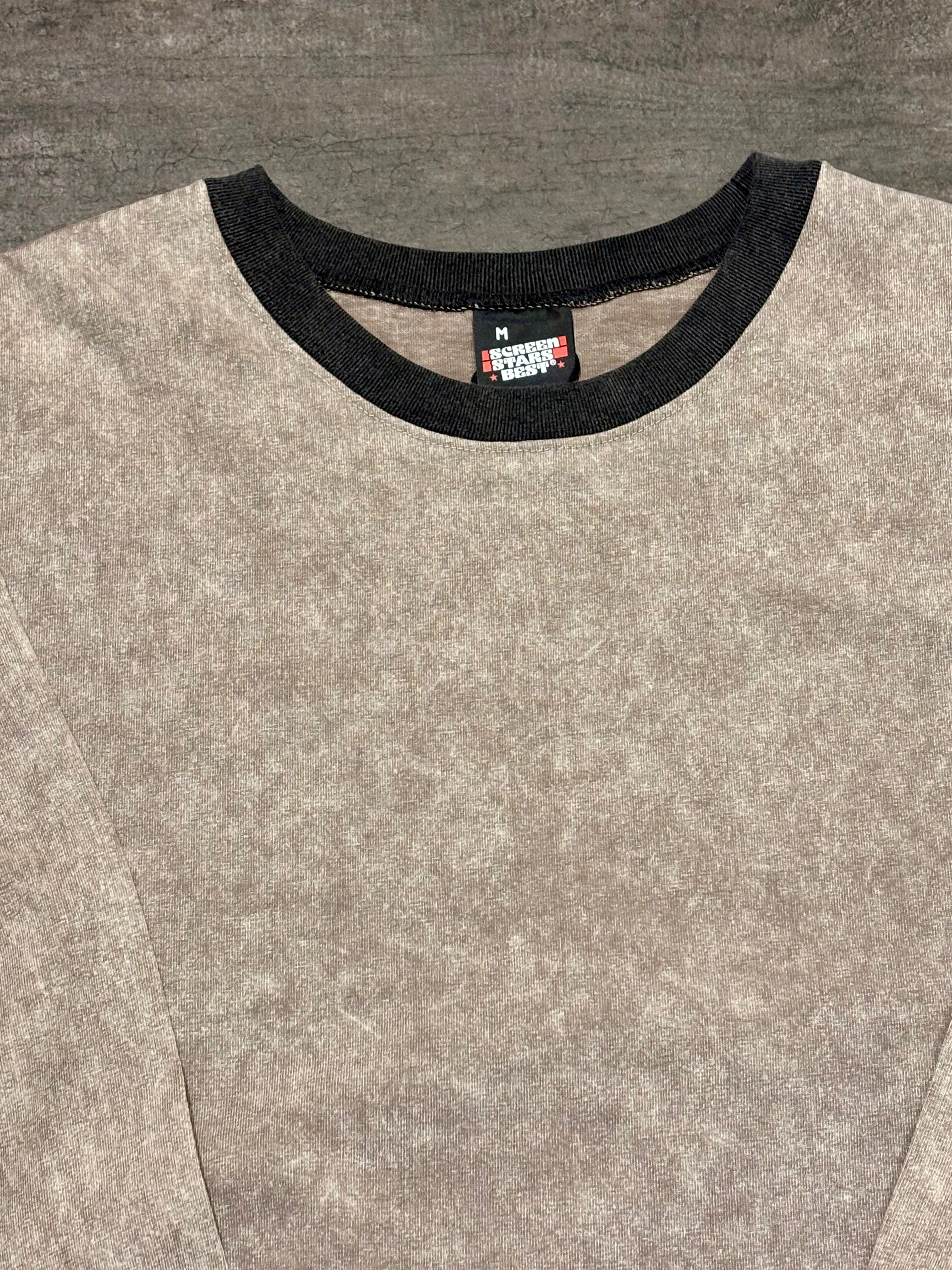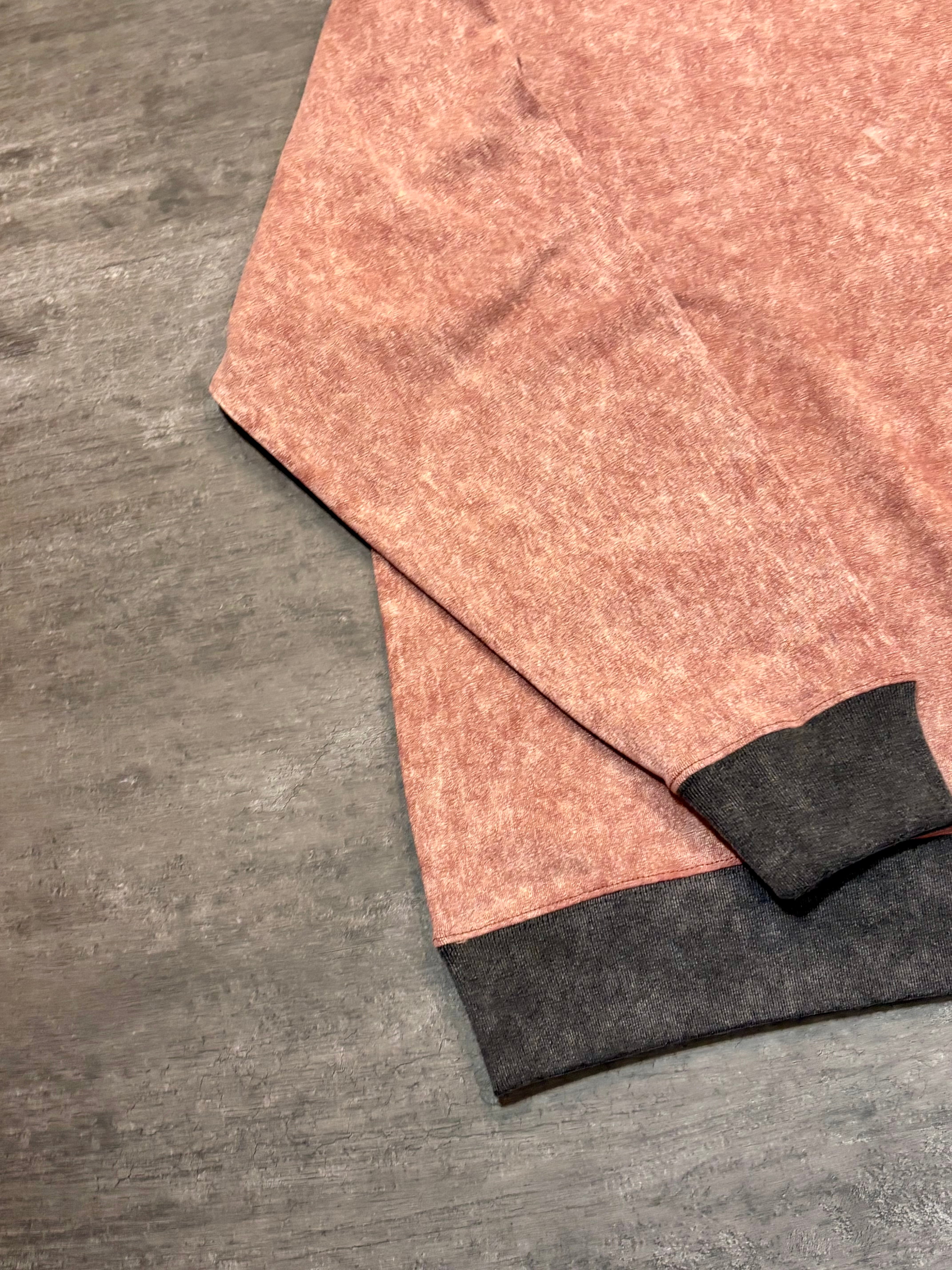 首元・袖口・裾にはチャコールグレーのリブ。