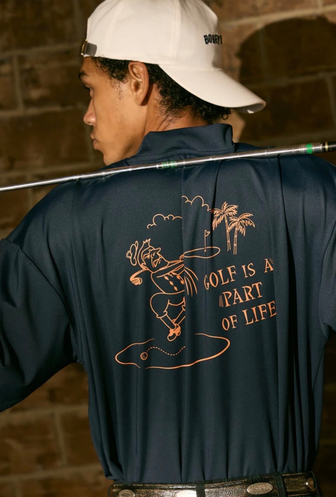 「GOLF IS A PART OF LIFE!」のメッセージが、BOGEY LOUNGEらしい遊び心を