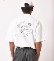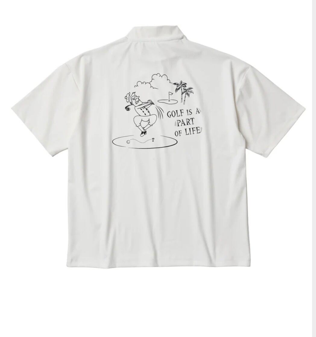 キャッチーなバックイラストが存在感を放つ半袖モック。