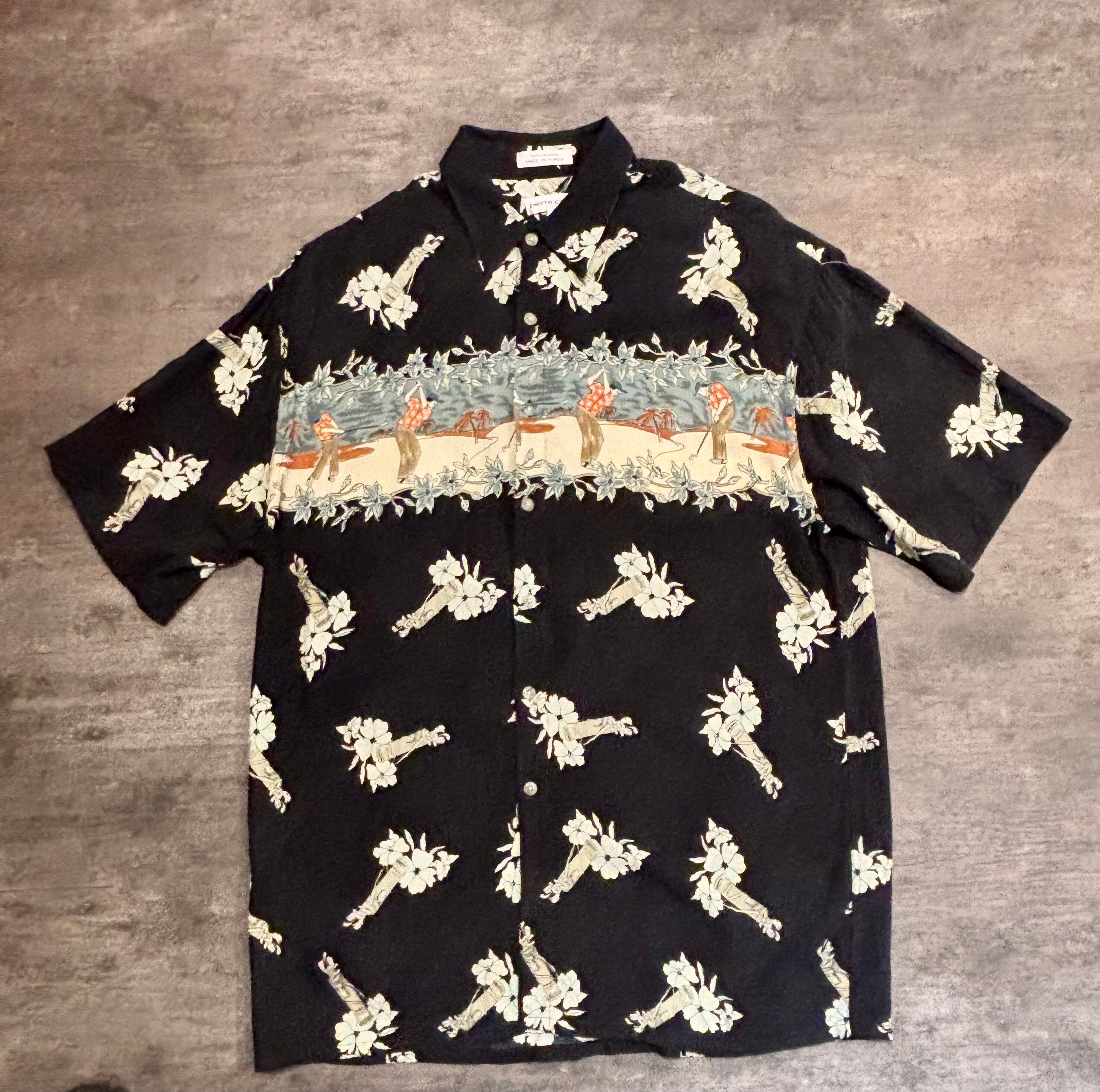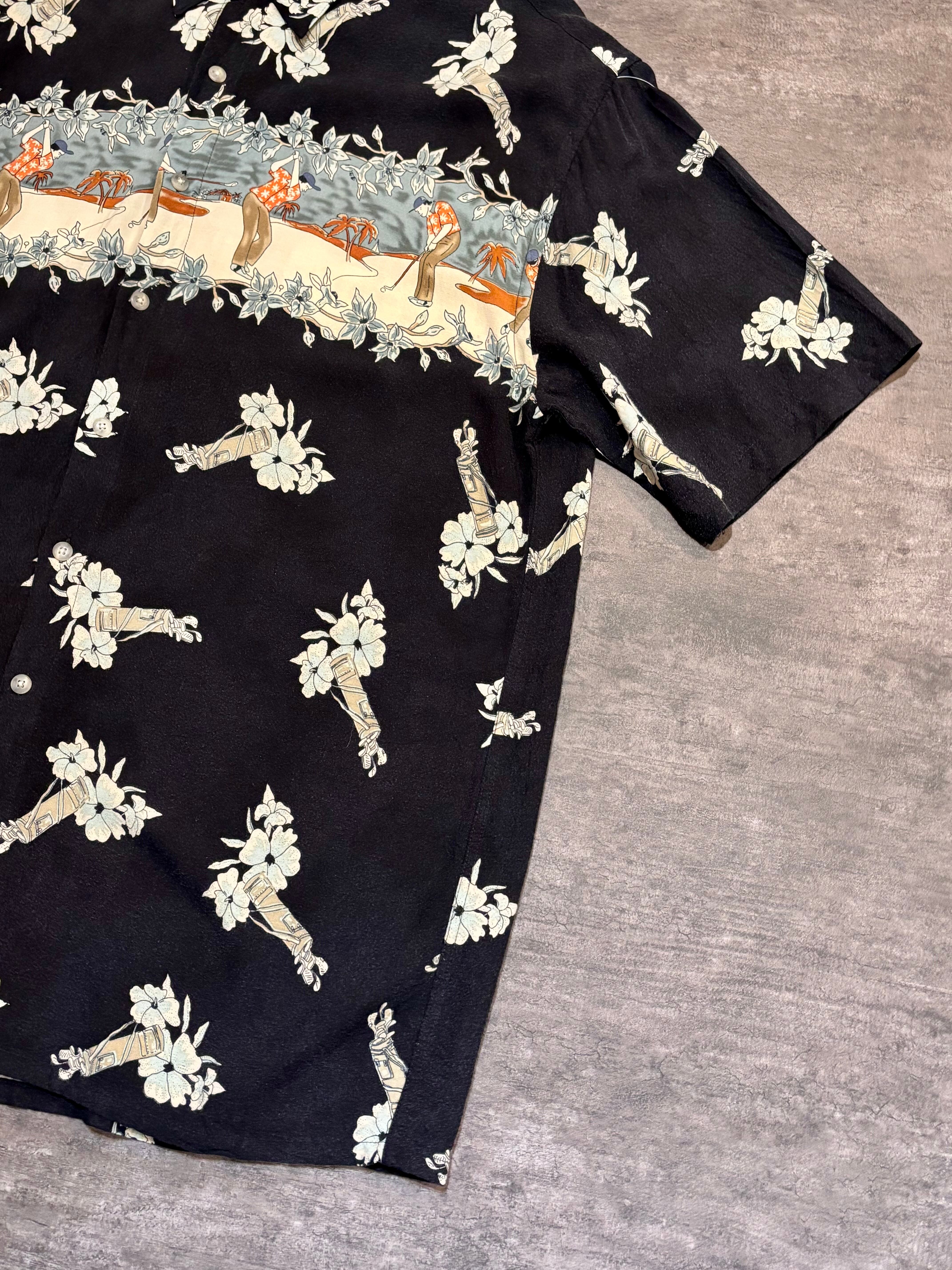 深みのあるブラックに映えるゴルフのアロハシャツ。