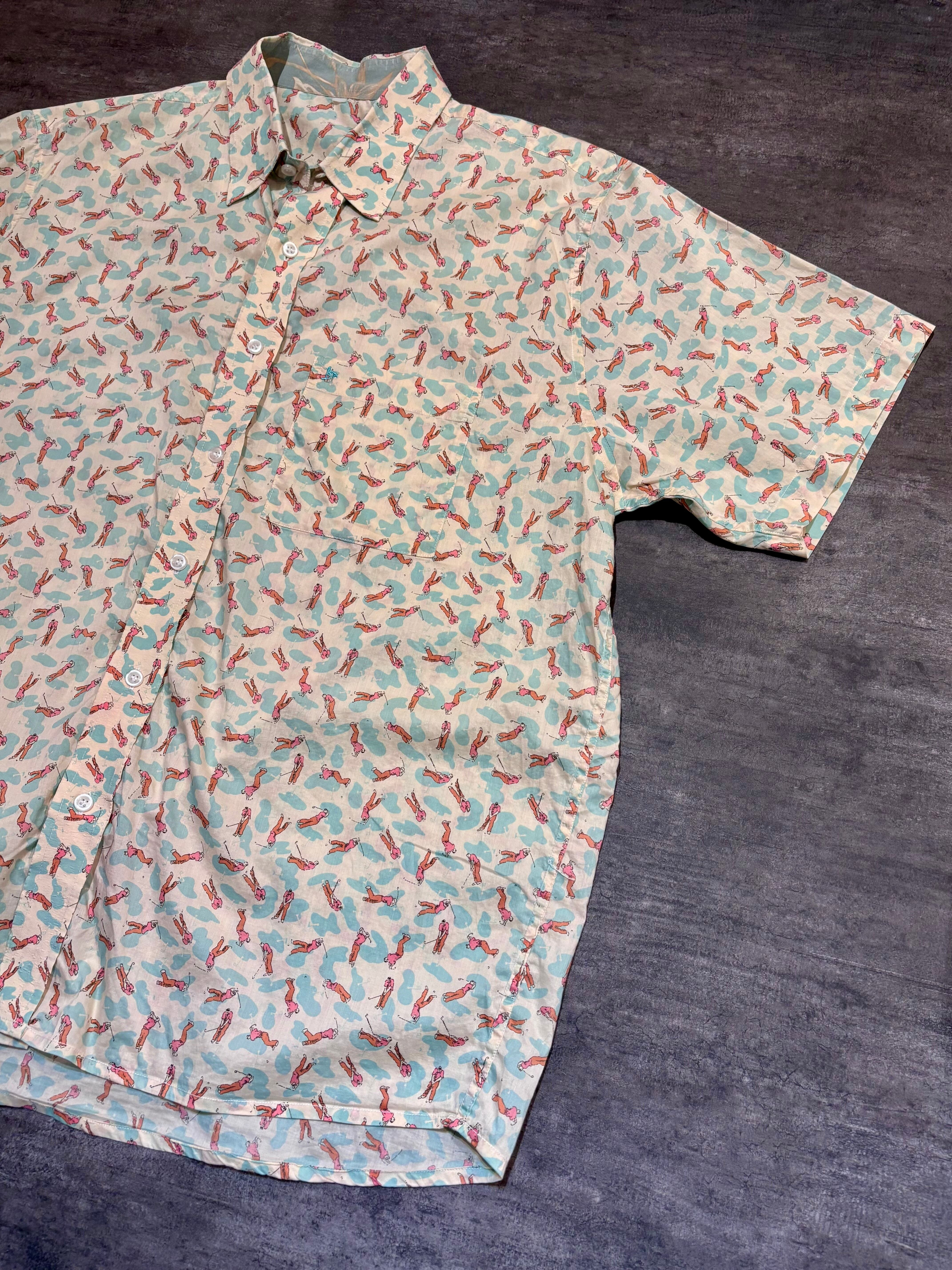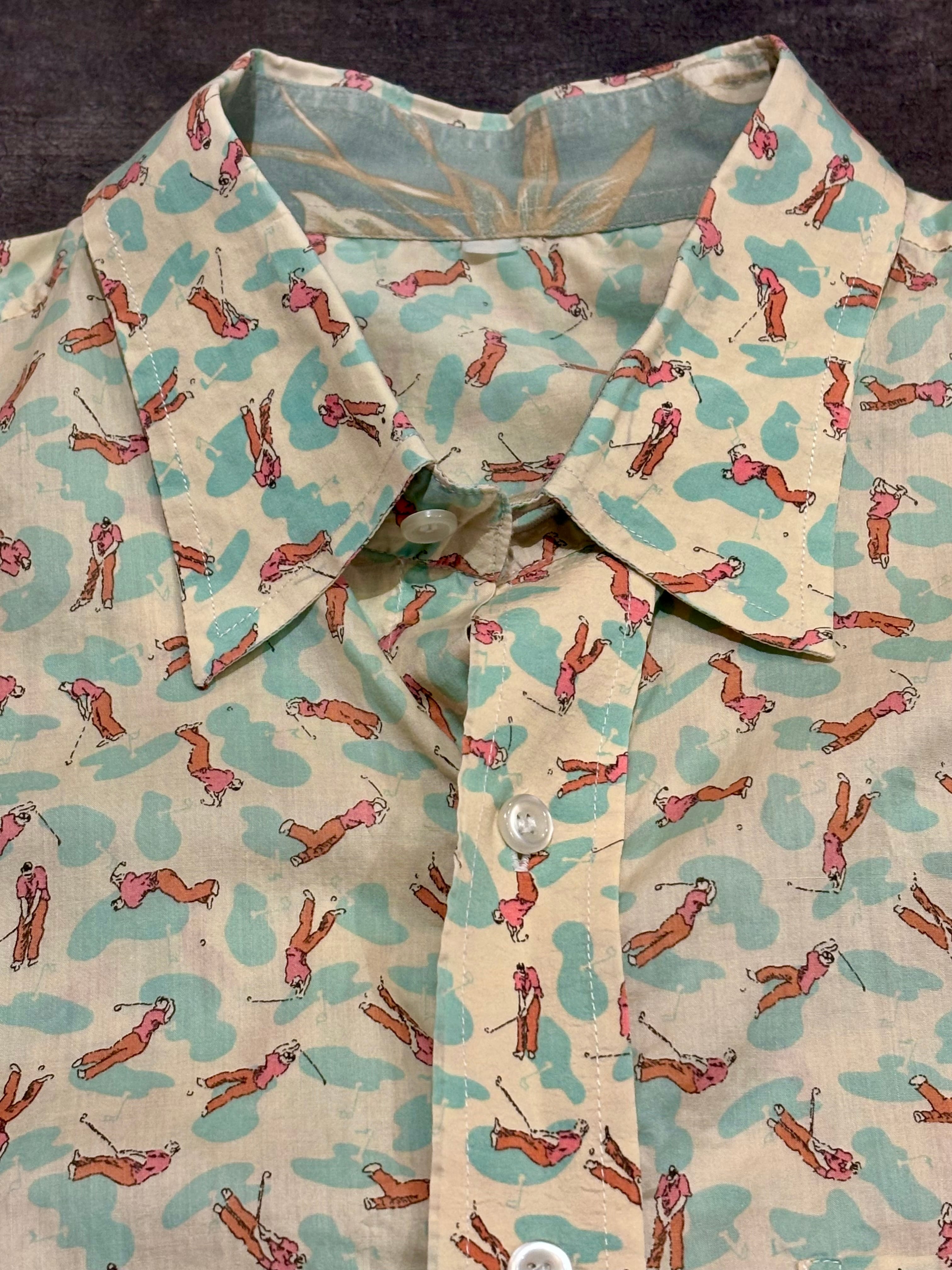 淡いトーンで描かれたゴルファーモチーフが、静かに個性を語る半袖シャツ。